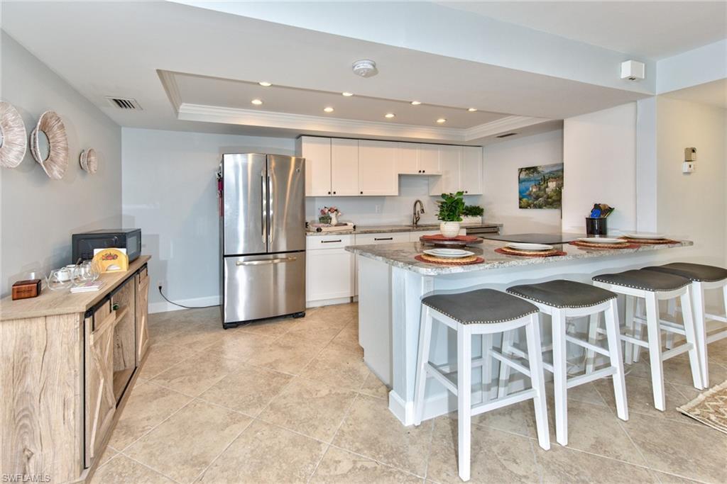 Great location - just 10 minutes to Downtown Naples and the beach!!! This condo is a perfect package - location, convenience - very walkable and bikeable location, a lot of stores nearby. Two bedrooms, two full bathrooms, plenty of closet space, large lanai from which you can walk right to the pool, assigned carport parking and external storage room. Renovated kitchen in 2023 with quartz countertop, new cabinets, new appliances, water heater (2023) , freshly painted and professionally decorated! HOA allows small dogs! HOA dues include insurance, flood insurance, landscaping, exterminator, water, cable and high speed internet!