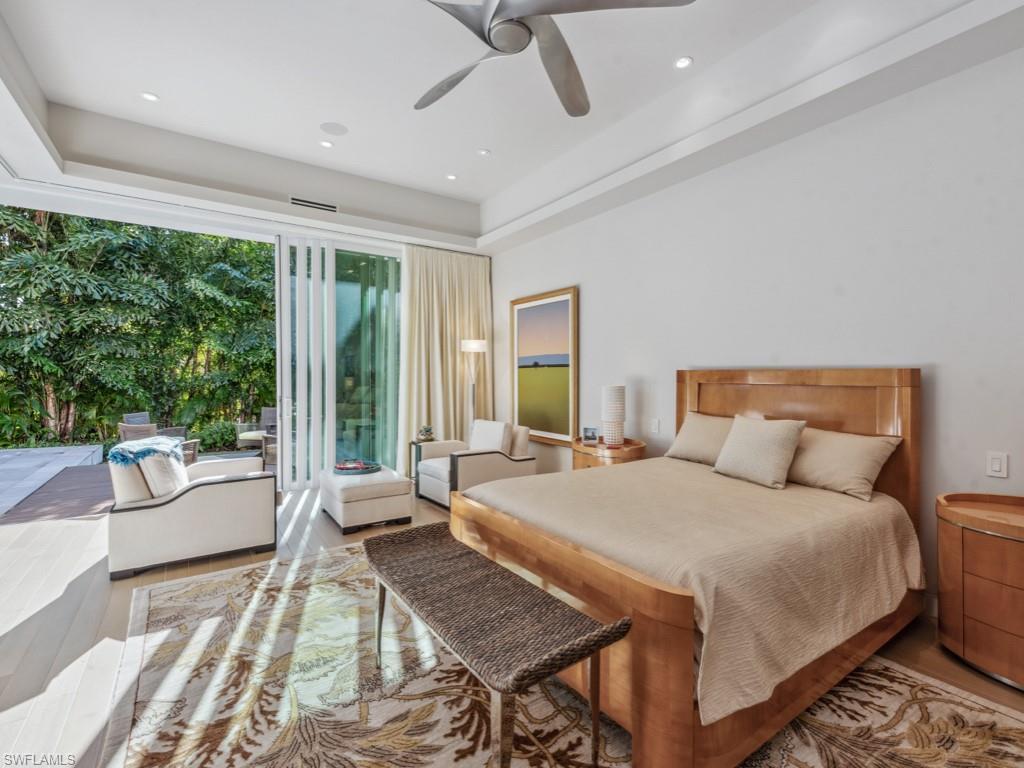 Comfortable casual living, outstanding location and exceptional entertaining space are only a few of the spectacular features of this highly crafted custom home built in 2016. Located on a quiet street in the heart of The Moorings neighborhood with convenient access to the Gulf through the private neighborhood beach park is only blocks away as is the newly opened Four Season Resort. Herscoe Hajjar Architects succeeded in creating an optimal and spacious floor plan that feels wide open and bright, combined with modern clean lines and a practical flow. Subdued wall color and limestone flooring provide an excellent backdrop for standout features such as a floating staircase, artisan created lighting fixtures, and see through fireplace. Rich Sycamore cabinetry, oversized square island, coffee station speaks to an inviting kitchen space for multiple cooks in the family. The beautifully lush landscaped lot offers useable space and privacy in both front and rear yards, and the oversized lanai overlooks an architecturally designed pool. An abundance of floor to ceiling doors throughout pocket back to enhance the front to back entertainment options. A spacious primary suite offers enticing views to the pool and spa from the tranquil lounge area, closets galore, oversized shower and elegant custom vanities. Two upstairs guest rooms have access to their own lounge with coffee/beverage bar and workout area. A 3rd oversized bonus room with private balcony is currently acting as a large office, and could be a full or part time guest room, art studio, playroom, hobby room and any other use. In addition to the abundance of storage in the laundry room, the extra deep/wide/high garage with additional built-in cabinetry surpasses any storage expectations.