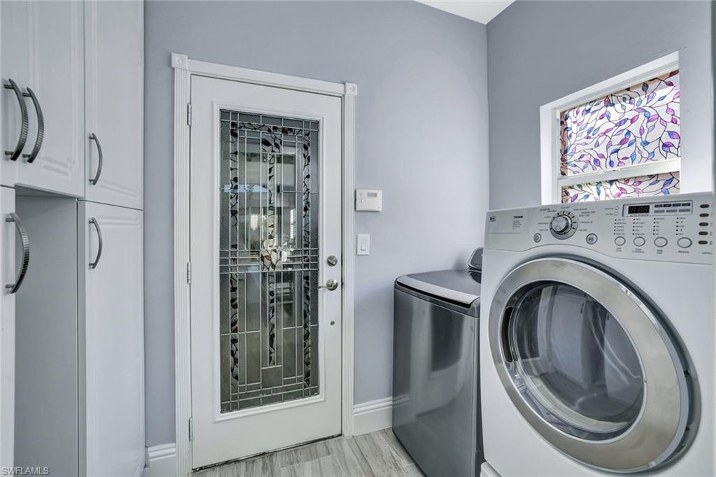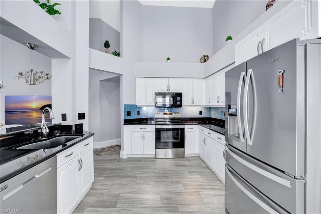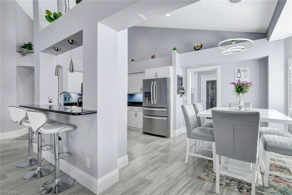 Welcome to 159 Lady Palm Dr in the desirable Sabal Lake community of Naples—a beautifully updated and immaculately maintained 3-bed, 2-bath home offering vaulted ceilings, an open and naturally bright layout, and a beautifully updated kitchen with white cabinetry, granite countertops, and stainless steel appliances. The primary suite features high ceilings and direct access to the enclosed lanai, while the additional bedrooms provide flexible space for guests or an office. An expansive, fully enclosed and air-conditioned lanai showcases a heated spa with lake views, creating a true indoor-outdoor retreat. The home also includes thoughtful upgrades such as plantation shutters, fresh interior paint, modern electrical updates, and a finished epoxy-coated garage with built-in storage. Sabal Lake residents enjoy a low-HOA lifestyle with access to a community clubhouse, pool, hot tub, and tennis/pickleball courts, all within minutes of Downtown Naples, world-class beaches, dining, and entertainment.
