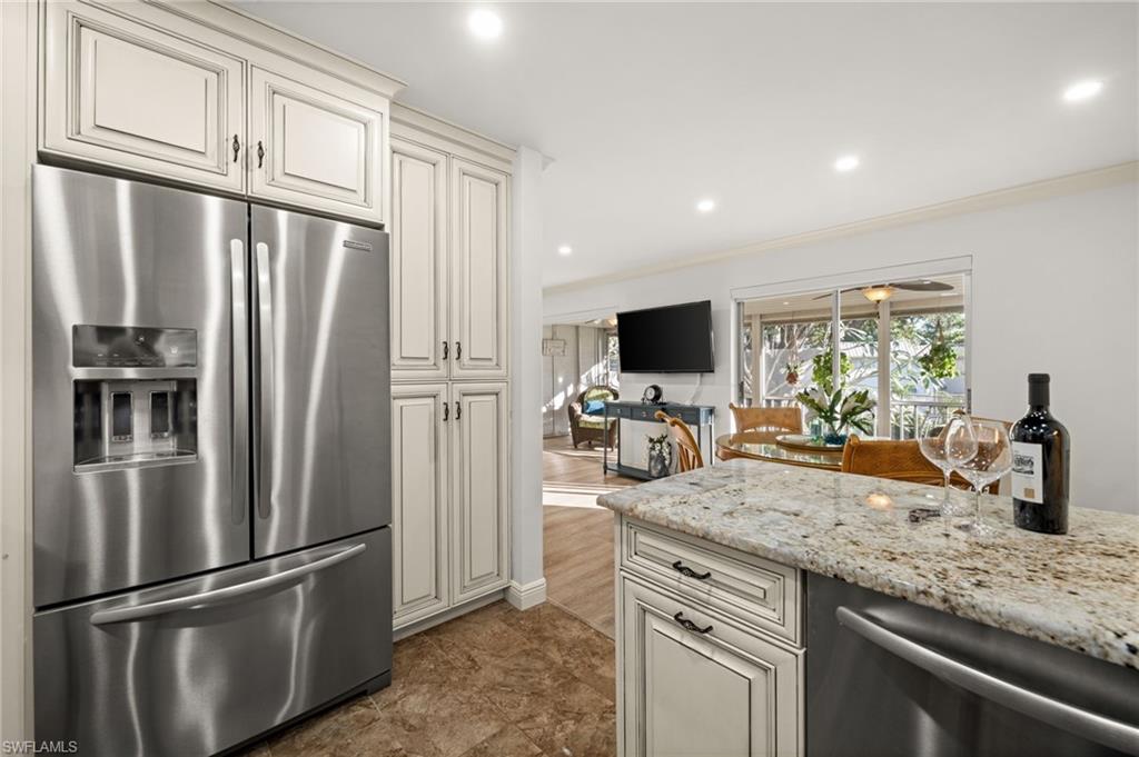 Bask in quiet coastal elegance inside this beautifully updated 2-bed, 2-bath second-floor condo in Old Naples , a low-density community within walking distance to downtown Naples and the Gulf beaches. This bright and airy residence captures the essence of relaxed Southwest Florida living, with natural light filtering through impact-rated windows and classic plantation shutters. Be sure you see the Lifestyle video! The screened 21 foot southern lanai, creates a calming space to enjoy morning coffee, evening breezes, or peaceful moments throughout the day. A timeless upgraded kitchen...understated luxury with clean lines, granite counters, a crisp tile backsplash, and ample cabinetry. Split-bedroom layout enhances privacy, with a spacious primary suite featuring an updated ensuite bath, while the guest bedroom and second full bath comfortably accommodate visitors or a home office. Royal Bay Villas offers pickleball, tennis, and a pool just steps from your door, with the Gulf beaches only 2 miles away. With added storage—a rare find downtown—and a community budget that already accounts for landscape renovations with no anticipated assessments. Move-in-ready and impeccably maintained, this condo is ideal for year-round living, a seasonal retreat, or an appealing investment opportunity—all just minutes from 5th Avenue’s vibrant restaurants and shops and the sugar-sand shoreline Naples is famous for.
