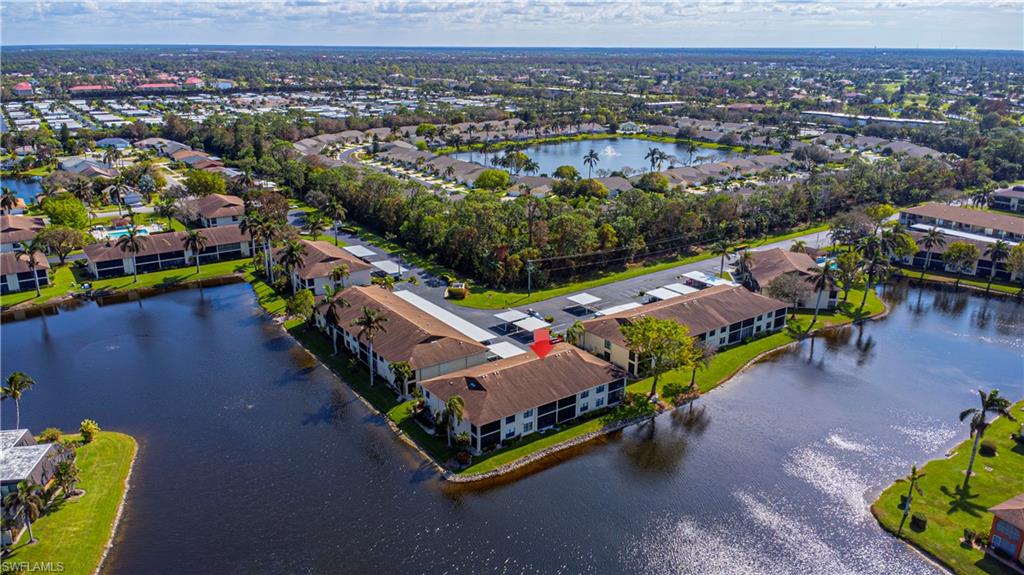 This attractive second-floor condo has stunning lake views from the expansive lanai and almost every room. Offered as a turnkey property, it includes all essentials for a comfortable start in your new home. The spacious owner's suite features direct lanai access and picturesque lake vistas. The en-suite bathroom is equipped with a step-in shower, dual sinks, and a walk-in closet. The kitchen and wet bar have been updated with granite countertops, and most appliances are 3-4 years old. Additional features include an in-unit laundry closet, pantry and a sizeable breakfast nook, perfect for a den or home office. Fountains V, set in a serene neighborhood, offers well-maintained grounds, two community pools, and a variety of social activities, all with reasonable association fees that cover cable and water. Its prime location features access to many conveniences including the Hibiscus Golf Course just a block away, close proximity to US 41 and the Shoppes at Hammock Cove within a mile, and it's only five miles from downtown Naples, renowned for its pristine beaches, gourmet dining, and sophisticated shopping.