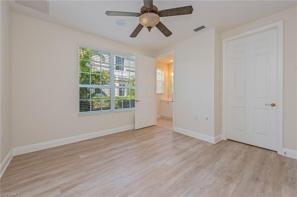 Discover this beautifully maintained three-bedroom, three-full-bath first-floor end-unit coach home in Laguna at Fiddler’s Creek, offering an upgraded open-concept layout, expansive lake views, and exceptional privacy from its desirable side-unit location. This immaculate, original-owner residence has never been rented or previously offered for sale and showcases thoughtful enhancements, abundant natural light, and a neutral color palette that suits a wide range of design preferences. Evening skies often glow with vibrant sunsets, which fill the main living areas with warm, colorful light. The spacious great room feels even larger thanks to a wall removed from the original design, creating a bright, open flow between the main living spaces. Large porcelain tile on the diagonal, crown molding, recessed lighting, built-in speakers, and impact-resistant windows and sliders highlight the home’s quality finishes. The screened lanai, with peaceful lake views and electric roll-down shutters for added protection and cleanliness, provides an ideal setting to enjoy morning coffee, breezy afternoons and picture-perfect sunset reflections across the water. The well-appointed kitchen features granite countertops, a tumbled-marble backsplash, under-cabinet and recessed lighting, a breakfast nook, and stainless-steel appliances including a newer French-door refrigerator, newer five-burner natural gas range, Bosch dishwasher, and built-in microwave. All three bedrooms feature waterproof luxury vinyl plank flooring, ceiling fans and generous closets. The primary suite offers tranquil lake views, impact sliders to the lanai, dual walk-in closets, and a spacious bath with dual sinks, jetted tub, separate shower and private water closet. Both guest bedrooms have their own full baths, each outfitted with porcelain tile and walk-in showers. Additional features include a laundry room with GE washer and gas dryer, laundry tub and cabinetry, a painted two-car garage, a tankless natural gas water heater and a new HVAC system installed in July 2024. Laguna residents enjoy impact-glass windows and sliders, a newer roof, updated exterior paint, and a well-maintained, beautifully landscaped HOA. The home is also conveniently near the Laguna village pool and mailboxes, adding everyday convenience to its list of perks. Residents of Fiddler’s Creek enjoy lush tropical landscaping and an unparalleled resort lifestyle anchored by a recently renovated Clubhouse, world-class fitness center with classes and trainers, 10 new pickleball courts, six Har-Tru tennis courts, a spectacular resort-style pool with waterfalls, slides, hot tub, sauna and steam room, along with exceptional indoor and outdoor dining options. Miles of scenic walking, jogging and biking paths add to the community’s natural beauty. Optional memberships, with no waiting list for golf, include the newly renovated championship golf course, the new golf clubhouse, a marina and a private beach club.