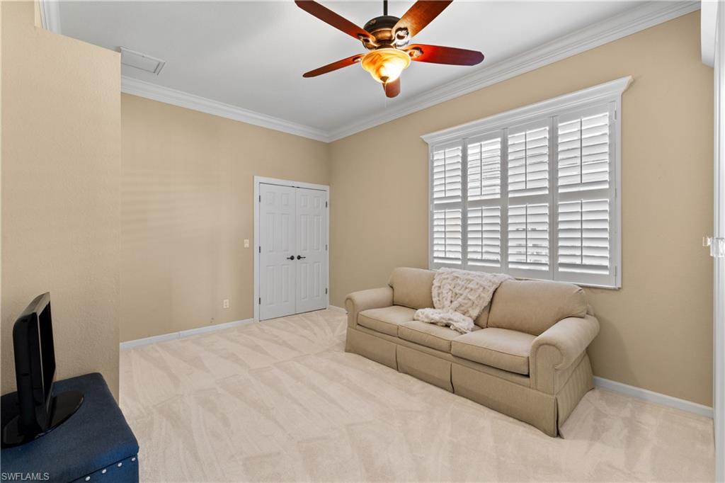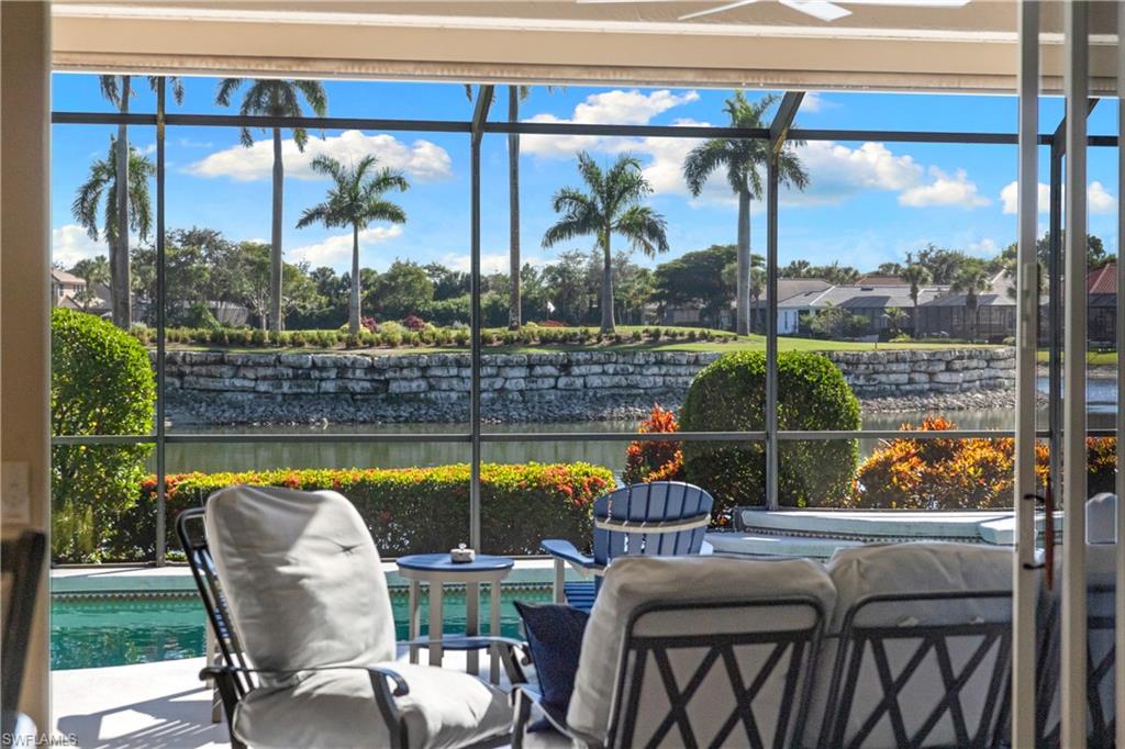 Some of the BEST golf and lake views in all of Palmira. This home sits on a premium South facing lot overlooking the signature par three on number eight of the Osprey course, offering a postcard perfect backdrop. The moment you step inside, you are greeted by an open and inviting layout filled with natural light, large windows, and sweeping panoramic views that will make you question why you ever lived anywhere else. The kitchen flows seamlessly into the living and dining areas, featuring stainless steel appliances and built-in cabinetry with ample storage making entertaining feel effortless. Slide open the doors to the screened lanai and step into your own private retreat, where a sparkling pool and spa are framed by lush landscaping, electric hurricane shutters, and breathtaking scenery that will captivate you every single day. The primary suite is spacious and serene, and two additional bedrooms with new carpet offer comfort and privacy for family or visitors. This property has been meticulously maintained with a newer roof, newer air conditioning, crown molding, and high end furnishings. Being sold turnkey, all you need to do is bring your toothbrush and clothes to start enjoying the Palmira lifestyle. As a resident of Palmira, you will enjoy access to world-class amenities at the Renaissance Center Club, including a heated lagoon-style swimming pool, a 75 ft. Olympic lap pool, and a state-of-the-art fitness center. The club also features a restaurant open to all residents, a variety of fitness classes, 8 lighted tennis courts, 5 bocce and 4 pickleball courts, and a spacious dog park. A full calendar of social events fosters a vibrant and active lifestyle, while Palmira’s beautifully landscaped grounds, lakes, rolling fairways, and 27-hole championship golf course provide a serene backdrop for this extraordinary home and community. Schedule your private tour today, and experience this incredible offering in-person.