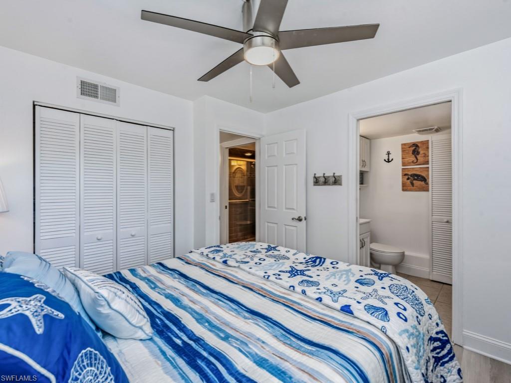 Rarely available 2 bedroom, 1 and a half bath Model Village residence located in charming Olde Marco! This highly desirable second floor, end residence boasts a light and bright interior with tasteful updates throughout. The fully equipped kitchen and in-residence laundry supply added convenience. The master suite is a private retreat with ensuite bath and the additional guest bedroom offers ample space for friends and family. The balcony provides year-round sunshine, the perfect place to relax and enjoy the gentle island breeze and fresh salt air. All impact windows and doors offer extra peace of mind. Enjoy quick, direct Gulf access within minutes from the common docks. Model Village is a low density building and offers beautiful community pool, grill, and spacious deck where you can enjoy picturesque sunsets. With a 1 night minimum rental policy, this gorgeous residence has endless rental potential. Many popular restaurants, the Shops of Olde Marco, marinas, and more are all at your fingertips. Do not hesitate to make this waterfront gem your piece of island paradise. Seller is a licensed real estate agent.