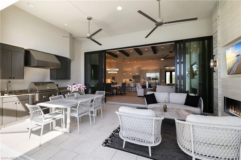 Welcome to your private retreat in Miromar Lakes, a beautifully appointed villa that blends everyday comfort with effortless luxury. This fully furnished 3-bedroom plus den residence welcomes you with an open, light-filled layout, refined finishes, and tranquil views overlooking both the shimmering lake and the lush golf course, creating an immediate sense of ease. The spacious den offers wonderful flexibility for a home office, media room, or cozy extra guest space. Step outside to a personal oasis designed for relaxation and connection. The sparkling pool and soothing spa create a serene place to unwind, all framed by peaceful water and fairway scenery. As the day comes to a close, this outdoor haven becomes even more enchanting. The expansive lanai, complete with a well-equipped outdoor kitchen and a cozy fireplace, is the perfect setting for evening cocktails, leisurely dinners under the sky, or simply watching brilliant sunsets paint the horizon in shades of gold and coral. Beyond your doorstep, Miromar Lakes offers a one-of-a-kind waterfront lifestyle. Enjoy white-sand beaches, a spectacular 10,000-square-foot lakefront resort-style pool, and endless opportunities for boating, sailing, and watersports across more than 700 acres of freshwater lakes. The vibrant Beach Club offers casual and fine dining, a full-service spa, fitness center, and a lively year-round social scene. Thoughtfully designed and perfectly positioned, this villa offers a beautiful blend of comfort, style, and the breathtaking sunsets that make Miromar Lakes living truly extraordinary.