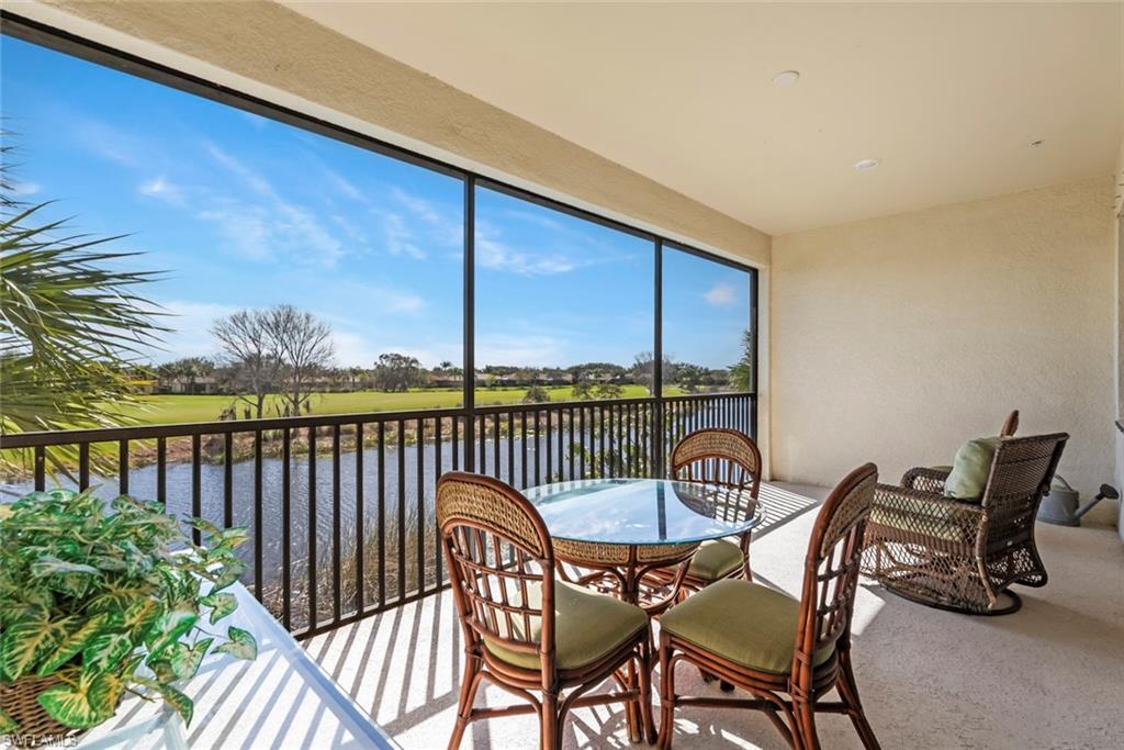 This FURNISHED condominium style 2nd floor Carriage Home is located in the 55+ Del Webb Naples community, featuring the popular CORMORANT floor plan with 3 bedrooms and 2 ½ bathrooms. This home is furnished with treasures from around the world. All you need to bring are your clothes. You will be pleased with the UPGRADES this home includes. A “Choice WARRANTY” covers the whole house, along with a warranty on the STAIRLIFT. The lift is valued at nearly $11k and includes a newer battery. This lift is multi purposeful, as it could be used to take items from your garage to your living area. This property features PLANTATION SHUTTERS on windows and tile throughout the home (except for carpeted stairs). The washer and dryer are upgraded Samsung models. A bright spacious kitchen/dining area with upgraded cabinets and quartz countertops leads into the living room with sliders to a private screened balcony lanai. The PRIMARY SUITE features a spacious WALK-IN CLOSET and an en-suite bathroom with dual sinks and WALK-IN SHOWER and a king sized bed. TWO additional bedrooms provide ample space for guests, a home office, or hobbies and the sofa in the great room features an extra long twin sleeper. You will love sitting on your enclosed balcony with the beautiful SUNRISE views of the pristine lake and the picturesque 6th Fairway of the PANTHER RUN GOLF COURSE. The Mayflower Condo HOA fees include Building Maintenance, Water and Sewer, Building Insurance, Fire Alarm Monitoring & Repairs, Reserves ROOF and PAINT, PEST CONTROL, Landscape, Common Area Utilities, CABLE bulk package. This section of Mayflower also has a private POOL only accessible to the carriage home residents. Golf enthusiasts will be thrilled to know there are AVAILABLE GOLF MEMBERSHIPS at the Panther Run Golf Club, offering an exceptional golfing experience. This home is not just a place to live, but a lifestyle. Experience the best of Florida living in a community that offers a vibrant, active lifestyle with world-class amenities including: resort-style pool, lap pool, fitness, center, pickleball, tennis and bocce courts, golf simulator, billiards and much more! Explore Del Webb Naples and Ave Maria effortlessly in your golf cart, whether you are heading to Publix, church or out for delightful dinner. Embrace the lifestyle you deserve in this extraordinary home, where comfort, luxury, and convenience seamlessly come together.