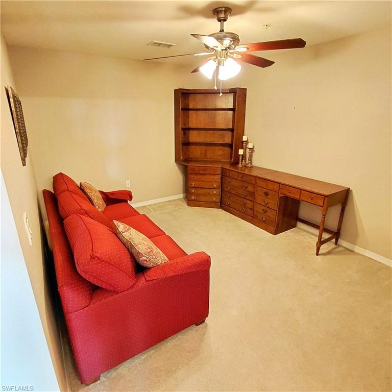 This beautifully maintained first floor home in Villagio offers one bedroom plus a den with a peaceful lake view. The setting is quiet and inviting with an easy walk to all of the community amenities. The owners have taken great care of the property. The water tank was replaced in 2021, the air conditioner was replaced in 2018, and a new walk in shower was installed in 2023. All appliances are newer, there are five ceiling fans, and the living room has an attractive newer window treatment that adds a polished finish. The open living area feels bright and relaxed and the den provides excellent flexibility for a home office or guest room. Villagio features two beautiful pools, a spa, tennis and pickleball, a fitness center, an on site cafe and sports bar, and a private movie theater that shows films in the evenings. A very important advantage is that this condominium is approved for FHA financing. Very few communities offer this, which makes this home a strong opportunity for a wider range of qualified buyers. Villagio has long been admired for its peaceful setting and friendly feel. The mature trees, lakes and walkways create a calm backdrop for daily living, and the central plaza brings neighbors together. The cafe offers simple meals and coffee, and the sports bar is a popular meeting spot for weekend games and social gatherings. The private theater is a signature feature that lets residents enjoy a movie night without leaving the community. The location adds even more appeal. Villagio is close to Coconut Point, Miromar Outlets, Gulf Coast Town Center and a wide choice of dining and entertainment. The beaches, RSW International Airport, Florida Gulf Coast University and Hertz Arena are all easy drives from the front gate. This comfortable mix of quiet surroundings and convenient access makes Villagio attractive to both full time and seasonal residents. A recent community special assessment in the amount of $1,422 was issued for improvements and maintenance. The seller has paid this amount in full, which gives the next owner added peace of mind and supports the continued quality of the community. With its well cared for interior, relaxing water view, thoughtful upgrades and rare FHA approval, this home offers outstanding value for anyone seeking a welcoming and affordable Southwest Florida residence with lasting appeal.