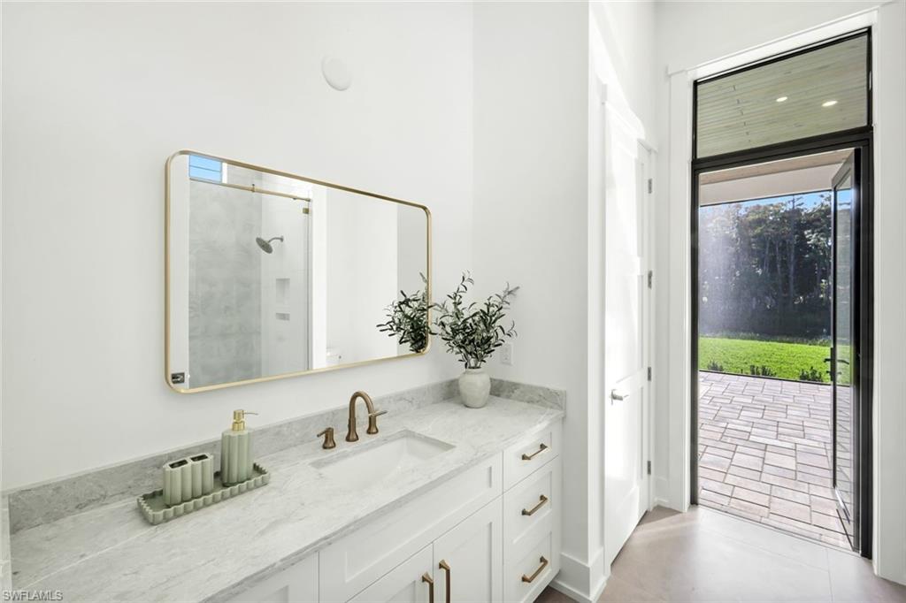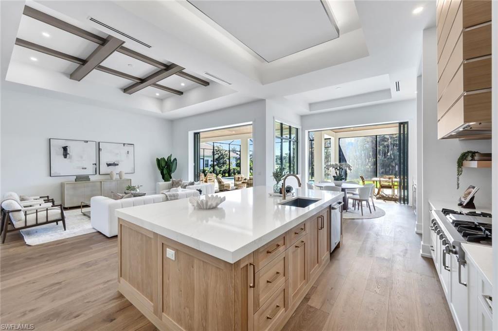 This unparalleled new construction home offers breathtaking southern views of both a pristine lake and an immaculate golf course, combining luxury living with natural beauty. Designed with exquisite craftsmanship and attention to detail, this home features soaring ceilings, expansive windows that flood the space with natural light, and an open-concept layout perfect for both relaxation and entertaining. The gourmet kitchen is a chef’s dream, boasting numerous appliances, custom cabinetry with hidden walk-in pantry and elegant quartz countertops throughout. The primary suite is a private retreat, complete with a spa-inspired ensuite shower and a spacious walk-in closet. Two other secondary suites are equally impressive in size with soaring ceilings, large walk-in closets and private bathrooms. This home features an oversized garage, thoughtfully designed to provide ample space for multiple vehicles, storage, and more. With extra-wide bays and extended depth, it easily accommodates larger vehicles or recreational equipment. Beyond parking, this versatile space is completely insulated and can serve as a workshop, home gym, or hobby room. Whether you're a car enthusiast, need additional storage, or want a flexible space for projects, this oversized garage offers unmatched convenience and possibilities. Outdoor living is elevated with two massive, covered patio living spaces, fully equipped outdoor kitchen, pool and spa, and seamless indoor-outdoor transitions, allowing you to fully immerse yourself in the stunning surroundings. Every inch of this home exudes sophistication and modern elegance, offering a rare opportunity to own a masterpiece in a premier location. At the heart of Wildcat Run is an Arnold Palmer Signature-designed golf course, renowned for its excellent conditions and challenging layout suitable for golfers of all skill levels. Complementing the golf experience is a 26,000-square-foot clubhouse that offers both formal and informal dining options, pro shops, and locker rooms. Wildcat Run's prime location in Estero provides residents with convenient access to nearby shopping, dining, and entertainment options, blending tranquility with modern conveniences.