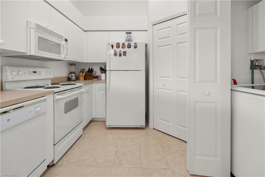 Enjoy effortless living in this bright and inviting 2-bedroom, 2-bath second-floor condo located in the sought-after Bonita Fairways community. This home features soaring vaulted ceilings, ceramic tile in the main living areas, and a versatile breakfast nook with peaceful lake views. The solid concrete construction includes hurricane shutters and a sprinkler system for peace of mind, and the unit comes with an in-residence washer and dryer plus an enclosed one-car garage. Step outside and you’re only a few steps from the community pool and hot tub, making it easy to relax or unwind anytime. A second clubhouse across the street offers even more amenities, including a fitness center, banquet room, library, billiards, card room, tennis, pickleball, bocce, shuffleboard, golf and a beautiful community meeting space. The neighborhood is gated, well-kept, and perfectly situated—just minutes from beaches, shopping, dining, and the airport.