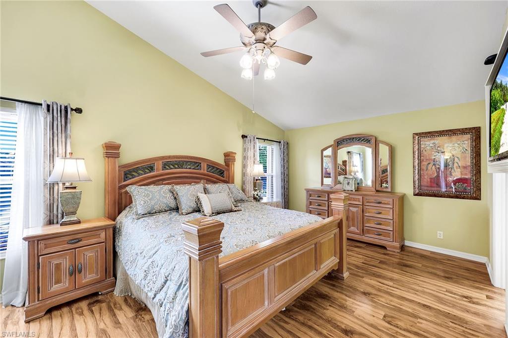 Go into this impeccably maintained turnkey home and begin enjoying the Florida lifestyle from day one. Positioned to capture wide, peaceful lake views, this move-in-ready residence offers comfort, style, and the welcoming charm of the rarely available Deveraux floor plan. The beautifully updated kitchen features custom-made cabinetry with under-cabinet lighting, granite countertops, a stone backsplash and a spacious walk-in pantry. The open layout flows effortlessly across engineered wood flooring, creating a warm and inviting atmosphere throughout. Wake up to serene water views from the spacious primary suite, complete with a cozy sitting area, an oversized walk-in closet and a primary bath with custom cabinetry, dual vanities and a walk-in shower. Additional highlights include custom window treatments, accordion hurricane shutters for peace of mind, a newer air conditioner (2020) and a den with a built-in bar, ideal for entertaining. Relax outdoors on the extended screened-in lanai, where wide, tranquil lake views provide the ideal backdrop for morning coffee or evening gatherings. Cascades at Estero is a vibrant 55-plus community offering exceptional amenities, including an indoor/outdoor pool, fitness center, billiards, library, tennis, pickleball and bocce courts, a hobby room, an events ballroom and more. This exceptional home blends comfort, quality and scenic beauty, ready for you to move right in and enjoy. Make it yours and embrace everything this remarkable community has to offer.