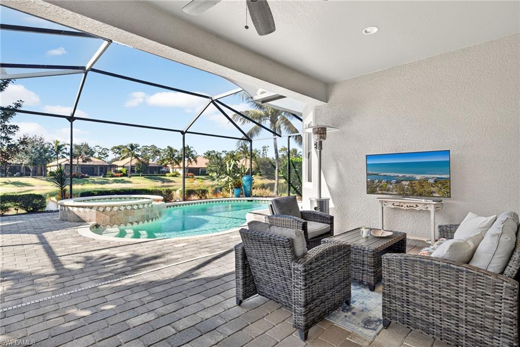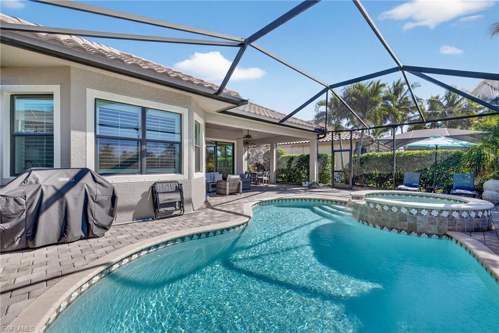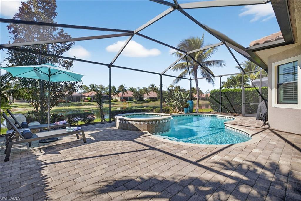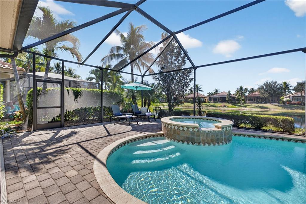 Welcome to this meticulously maintained Salerno floor plan home, perfectly situated in the highly sought-after gated community of Bonita Isles in Bonita Springs, Florida. This beautifully updated residence offers 3 spacious bedrooms and 2.5 bathrooms, combining modern upgrades with an inviting, open-concept layout designed for comfortable living and effortless entertaining. As you enter, you’ll notice the freshly painted interior that brightens every room and complements the home’s elegant finishes. The heart of the home features a gorgeous upgraded kitchen complete with gleaming quartz countertops, stylish cabinetry, and a generous island that seamlessly flows into the living and dining areas. Step outside to your private screened-in lanai that faces northeast, offering serene mornings and the most breathtaking sunset views reflecting beautifully across the water and landscaped surroundings. Enjoy the Florida lifestyle year-round with your sparkling pool and spa, recently enhanced with new pool equipment for worry-free enjoyment. Every corner of this home showcases pride of ownership. The bedrooms are spacious and filled with natural light, and the bathrooms are well-appointed, including a convenient half bath for guests. Additional updates include a brand new washer and dryer, adding to the move-in-ready appeal. This property is truly a rare find—spacious, pristine, and perfectly positioned within one of Bonita Springs’ most desirable communities. With resort-style amenities, low HOA fees, and convenient access to beaches, dining, and shopping, this home offers the best of Southwest Florida living.