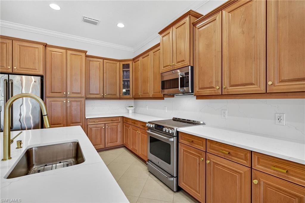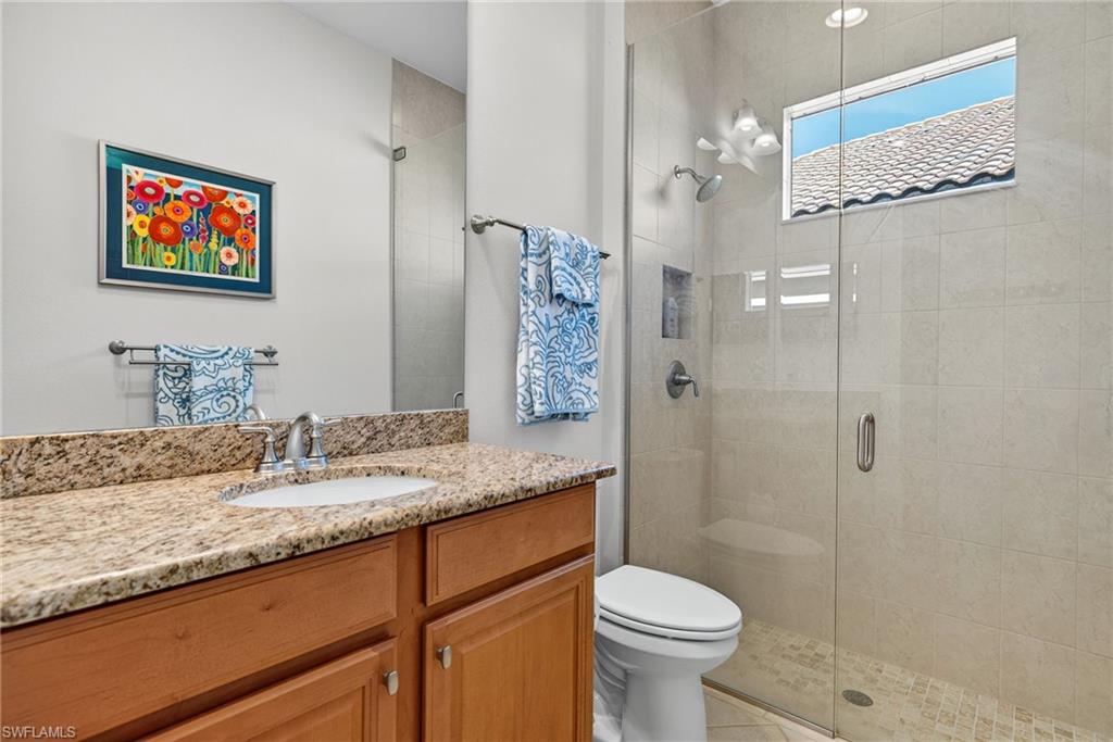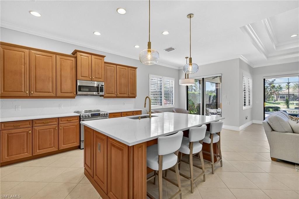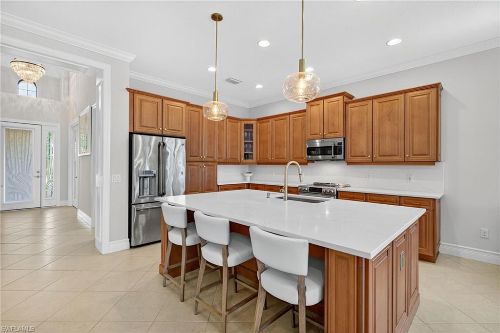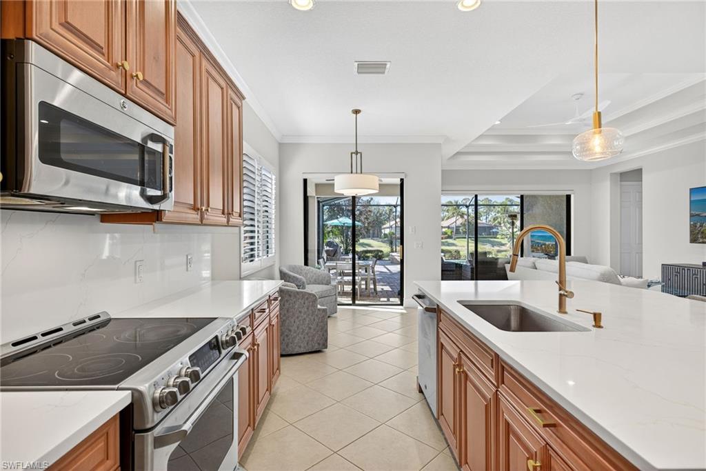 Welcome to this meticulously maintained Salerno floor plan home, perfectly situated in the highly sought-after gated community of Bonita Isles in Bonita Springs, Florida. This beautifully updated residence offers 3 spacious bedrooms and 2.5 bathrooms, combining modern upgrades with an inviting, open-concept layout designed for comfortable living and effortless entertaining. As you enter, you’ll notice the freshly painted interior that brightens every room and complements the home’s elegant finishes. The heart of the home features a gorgeous upgraded kitchen complete with gleaming quartz countertops, stylish cabinetry, and a generous island that seamlessly flows into the living and dining areas. Step outside to your private screened-in lanai that faces northeast, offering serene mornings and the most breathtaking sunset views reflecting beautifully across the water and landscaped surroundings. Enjoy the Florida lifestyle year-round with your sparkling pool and spa, recently enhanced with new pool equipment for worry-free enjoyment. Every corner of this home showcases pride of ownership. The bedrooms are spacious and filled with natural light, and the bathrooms are well-appointed, including a convenient half bath for guests. Additional updates include a brand new washer and dryer, adding to the move-in-ready appeal. This property is truly a rare find—spacious, pristine, and perfectly positioned within one of Bonita Springs’ most desirable communities. With resort-style amenities, low HOA fees, and convenient access to beaches, dining, and shopping, this home offers the best of Southwest Florida living.