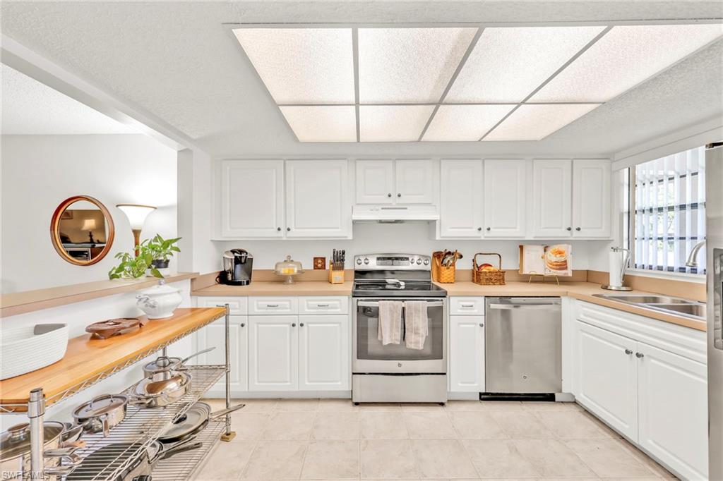 Rarely Available - Lakefront Gem - This meticulously maintained home features oversized tile throughout with a light and airy neutral decor. Warm and inviting, this home truly stands out with its fabulous upgrades and spacious open layout. The kitchen features Custom Cornerstone Cabinets and Stainless Steel Appliances, while the large tiled living room opens to a spacious lanai with one of the best views of the community lake and pool areas. This Palm River condo has been totally re-piped and has a new roof and offers many other upgrades throughout. The Primary Bathroom now has a new vanity, updated tile, flooring, and a totally remodeled shower with a modern deco drain. The Guest bathroom also includes modern features such as a new vanity and a large tub for guests. Additional features include a spacious walk-in closet, new water heater and an extra storage closet on the lanai for outdoor and seasonal items. Haciendas is located close to everything - 5 minutes to Mercato, 10 minutes to Vanderbilt Beach and only 20 minutes to downtown Naples. This lakefront condo in Haciendas offers a blend of modern upgrades and a prime location at an attractive price point. With its spacious design, quality materials, and convenient access to local attractions, it's an excellent opportunity for anyone looking to invest in a comfortable and stylish living space in Palm River.