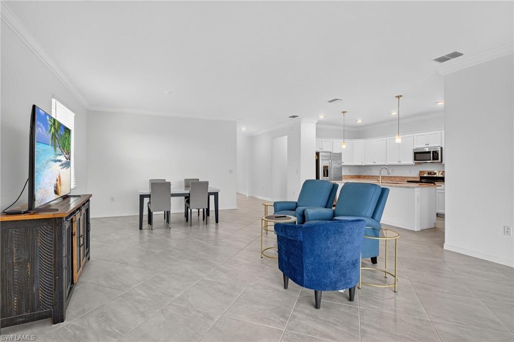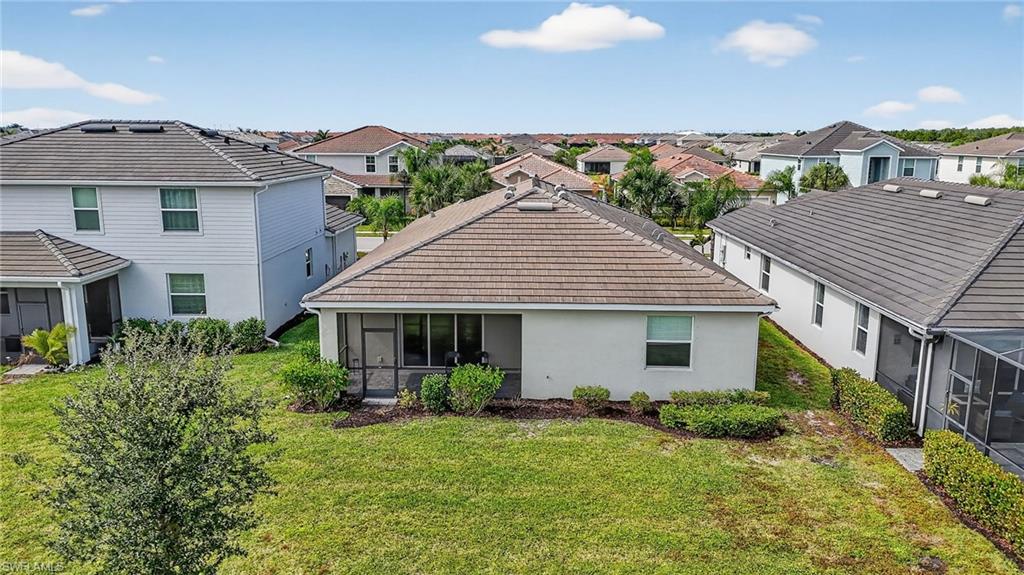 Welcome to this beautifully maintained 4-bedroom, 3-bath single-family home built in 2022 in the gated community of Orange Blossom Ranch. This modern home features an open-concept great room, elegant tile flooring throughout, and a spacious kitchen with a large island, stainless steel appliances, and generous cabinet space. The split-bedroom layout offers comfort and privacy, with bright natural light flowing through the main living areas. Step outside to a screened lanai with tranquil canal views—perfect for morning coffee or unwinding at sunset. Orange Blossom Ranch offers resort-style amenities including two pools, fitness center, clubhouse, splash pad, tennis courts, basketball, volleyball, playgrounds, and walking paths. Conveniently located near schools, restaurants, and daily conveniences. Move-in ready and ideal for enjoying the Naples lifestyle.