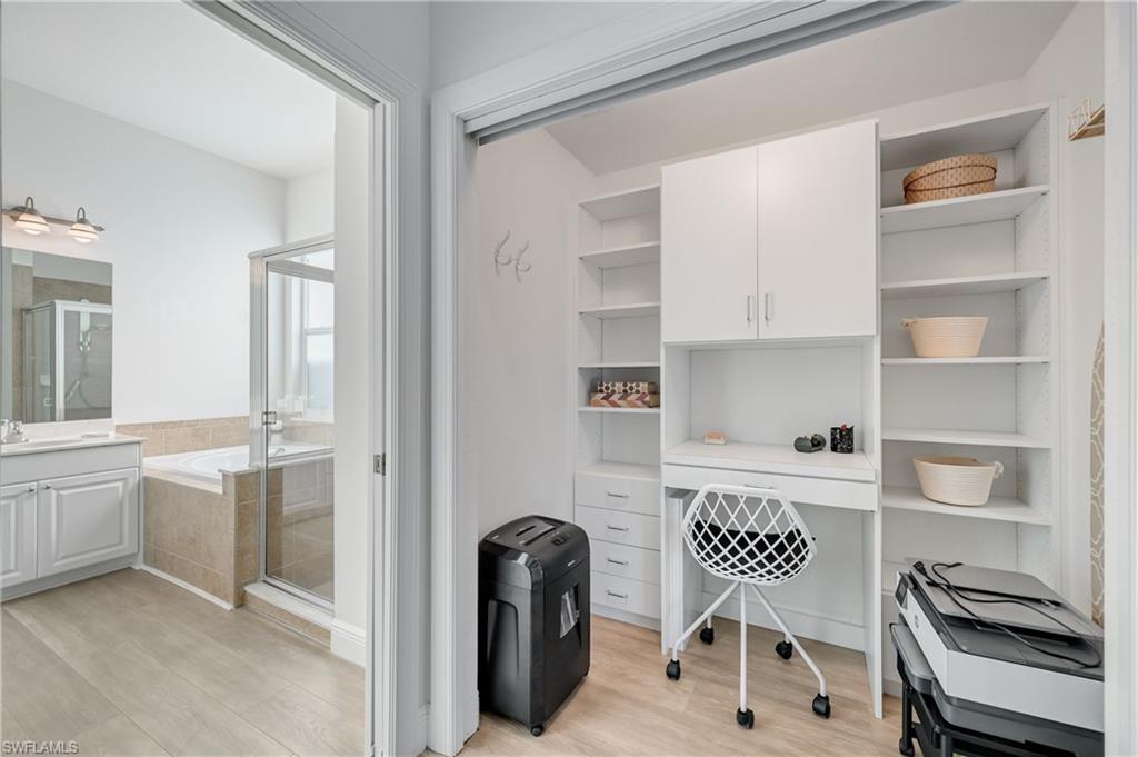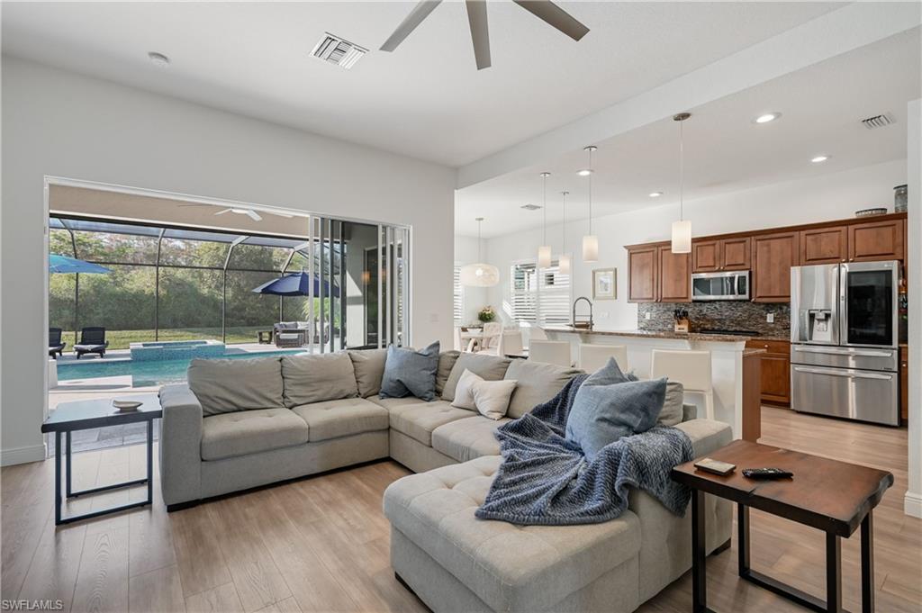 Welcome to this beautifully maintained pool home in a sought-after Naples community! This pristine 2BR plus Den/2BA residence offers upgrades galore! Step inside to find high ceilings, elegant wood flooring, and a spacious great room that flows seamlessly into the upgraded kitchen featuring granite countertops, stainless-steel appliances, and a generous breakfast bar. The split-bedroom floorplan ensures privacy, with a serene primary suite that includes a walk-in closet, and a spa-inspired bathroom. Enjoy Florida living at its finest on the covered lanai with an oversized sparkling pool and spa overlooking the private and lush preserve landscaping. The property also includes an attached two-car garage with built-in storage, an epoxy floor, equipped with a brand new mini split premium Levalor AC, a motorized bike lift, and separate large storage lift. Located just minutes from pristine Gulf beaches, world-class dining, shopping, golf courses, and top-rated schools, this home offers the perfect blend of comfort, convenience, and classic Naples charm. The Quarry is an amenity-rich, gated lakefront community boasting over 500 acres of lakes ideal for boating, water skiing, paddleboarding, jet skiing, kayaking, and fishing. The newly renovated Beach Club features tennis, pickleball, bocce ball, a Tiki bar, a restaurant, poolside food and drink service, a wellness center, and a full-time activities director to keep you engaged. Optional golf membership is available, making The Quarry a perfect fit for everyone! Embrace the lifestyle you’ve always wanted in this vibrant community! Whether you’re seeking a year-round residence, seasonal getaway, or investment opportunity, 9121 Quartz Lane is move-in ready and sure to impress.