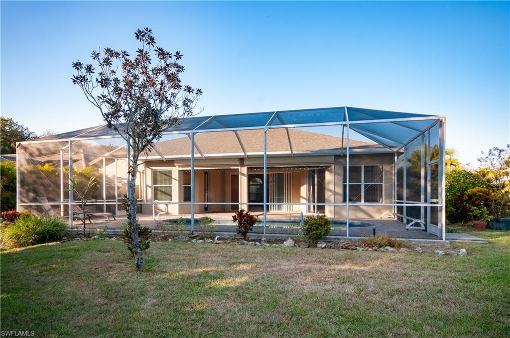 Seeking peace, privacy, and nature? This 4-bedroom, 2-bath home (approx. 2,195 sq. ft.) sits on one of the largest lots in The Villages at Country Creek, with the south branch of the Estero River at the rear of the property. A spacious great room opens to the pool with stackable sliders and lush natural views, and the split-bedroom floor plan offers excellent privacy. Rooms are generously sized. Recent updates include: new roof (2018), 4-ton AC (2020), updated main suite bathroom (2023), new driveway and pool pavers (2022), new kitchen appliances (2024), and new pool pump (2025). You’ll also enjoy 10–12 ft ceilings with crown molding, double insulation, ceiling fans throughout, impact windows in the kitchen dining area, front bedroom and front dining room, plus an in-ground irrigation system. Two electric shutters across the back patio and manual shutters for remaining windows. Internet and cable are included in the quarterly dues. The Villages at Country Creek offers a challenging golf course in great condition, multiple pools, tennis, bocce, and a clubhouse with social activities. Conveniently located in growing Estero, you’re close to RSW airport and extensive shopping and dining.