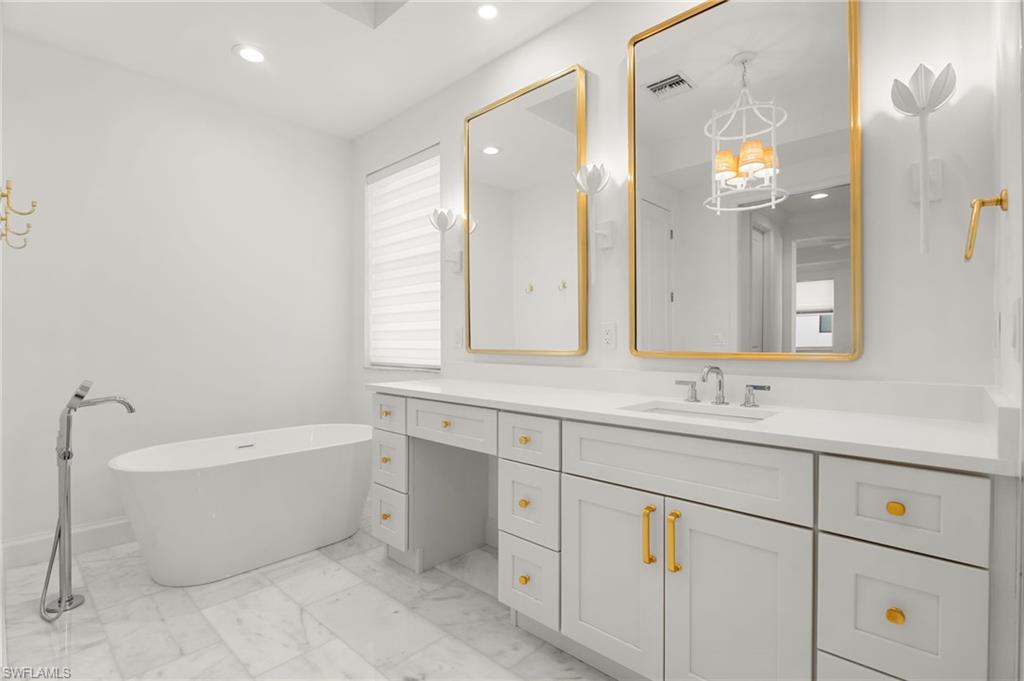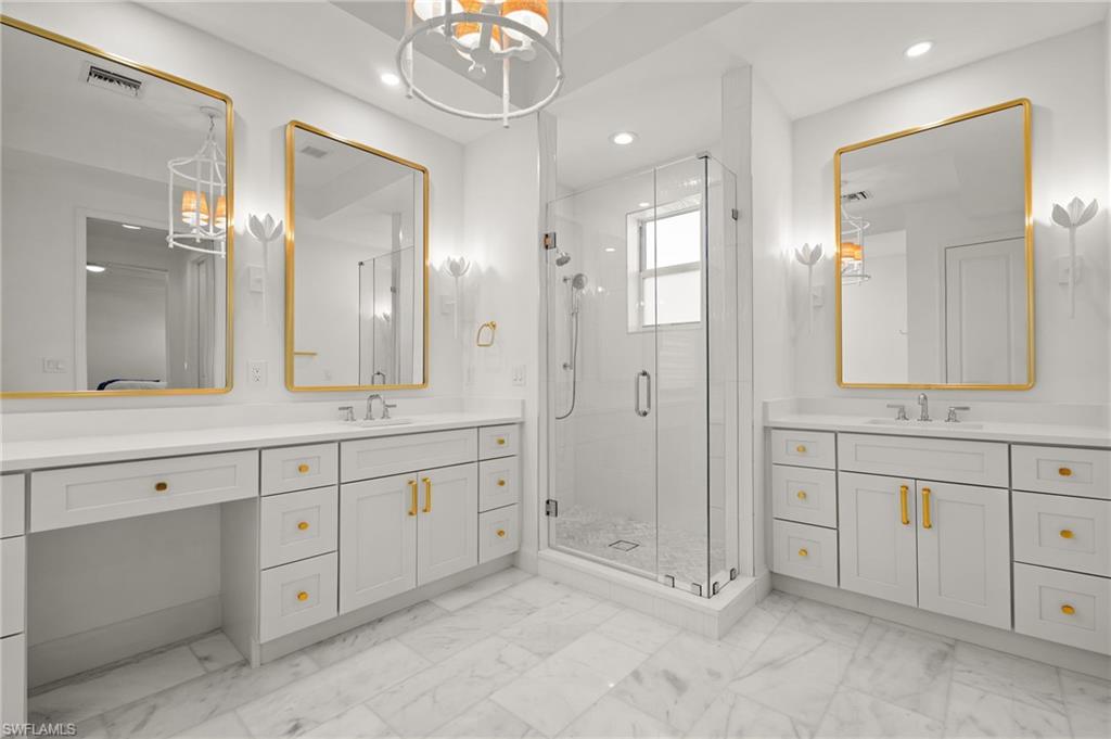 BRAND NEW REMODEL! 2015 built coastal gem along 91st; the closest street in Naples Park to Vanderbilt Beach with no neighbors to the south, a half mile to sandy white beaches & less than a mile to Mercato. This property was extensively remodeled since last listed - including wide plank white oak wood flooring throughout, new white shaker cabinetry with quartz, 4 remodeled bathrooms, and more! Enter to a 2 story foyer with 10 ft tray ceilings & grand room design backdropped w/ hurricane impact sliders to the pool. The spacious kitchen features NEW custom cabinets, new stainless appliances and extended built ins with wine fridge, adjacent dining room & easy access to the outdoors. Downstairs has an en-suite bed/bath, multiple storage closets & 2.5 car tandem garage w/ epoxy floor. Outside is an oversized screened patio with custom heated saltwater pool, waterfall spa, outdoor shower & pool bath. Upstairs is a second living room/loft, 2 guest rooms with en-suite baths, spacious closets, & Juliette balcony to the southwest sunsets. The upstairs master suite is massive with ample windows, natural light, sitting area, two walk-in closets & decedent spa bath w/ soaking tub - all updated in 2025! An upstairs adjacent laundry completes the space. This special home has pricey upgrades including 2 new AC units, coastal siding, impact windows/doors, metal roof, 2023 generator, whole home Kinetico water system, crown molding & more!