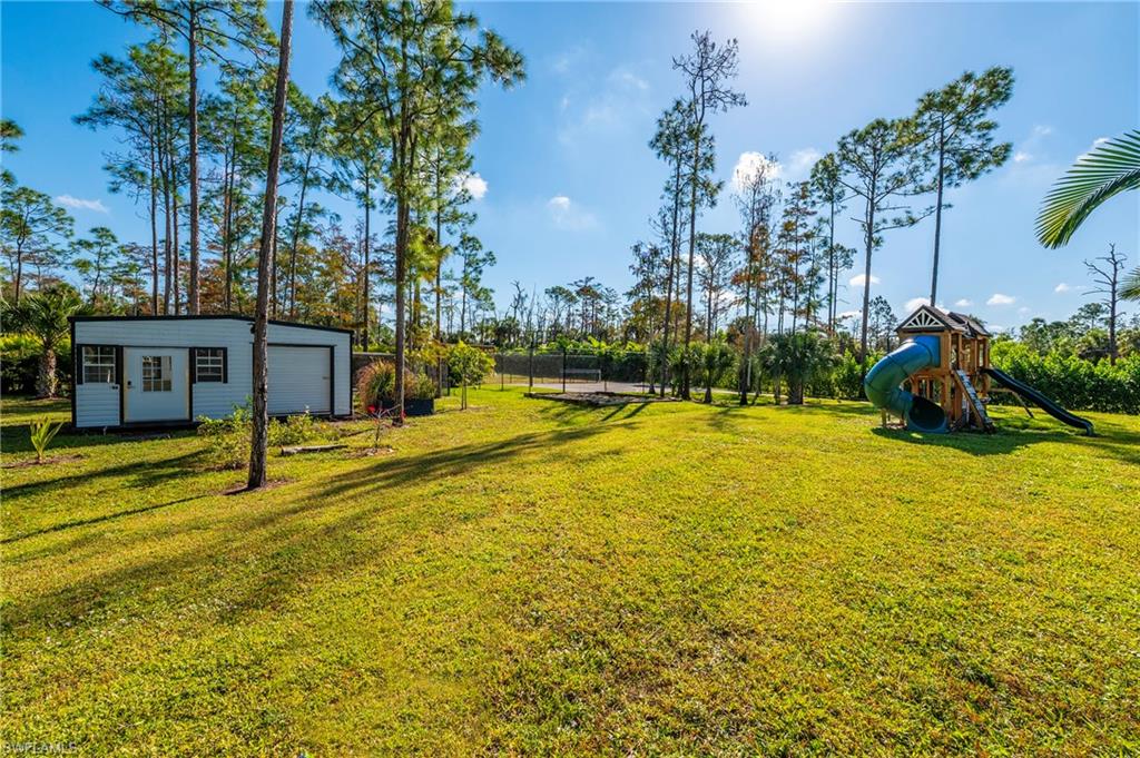 Stunning 4-Bedroom Estate on 2.81 Acres with Resort-Style Amenities Discover the perfect blend of luxury, privacy, and functionality in this impeccably maintained 4-bed, 3-bath estate situated on 2.81 acres of beautifully designed grounds. From the grand circle driveway to the premium upgrades throughout, this home is built for comfort, entertainment, and everyday living. Inside, enjoy 14 ft. tray ceilings, elegant plantation shutters, and smart switches/outlets throughout. A 2-year-old reverse osmosis system ensures exceptional water quality, while 11 ADT-monitored security cameras provide peace of mind. The home also includes a professionally installed Tonal home gym system. Step outdoors to your private resort-style haven. The expansive 38' x 18' pool (7 ft. deep) pairs perfectly with an outdoor projector and Bose sound system for unforgettable poolside movie nights. A fully equipped outdoor kitchen—complete with grill, flat-top griddle, and refrigerator—makes hosting effortless. The large screened-in lanai features a flat-screen TV and a motorized roll-down screen for comfortable indoor–outdoor living. For those who need space to work, create, or store, the property offers an impressive 32' x 40' air-conditioned workshop with a new 4-ton A/C unit and an attached carport, plus an air-conditioned shed with lighting. There is also a fully enclosed area designed for safely keeping chickens or ducks. The grounds continue to impress with: Mango, lemon, orange, coconut, avocado, and multiple banana trees Privacy-enhancing Clusia, Fishtail, and Areca palms Outdoor basketball court Access road leading to a cleared recreation area at the back of the property Fencing installed one foot below grade to keep pets secure Located in a rapidly developing area, the property is just a short 3-minute drive to the nearest Publix or Tractor Supply, with new stores and conveniences opening all around—making this both a luxurious home and a smart investment. This remarkable listing truly has it all, and with so much to offer, it won't last long.