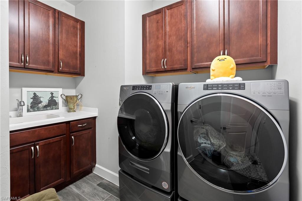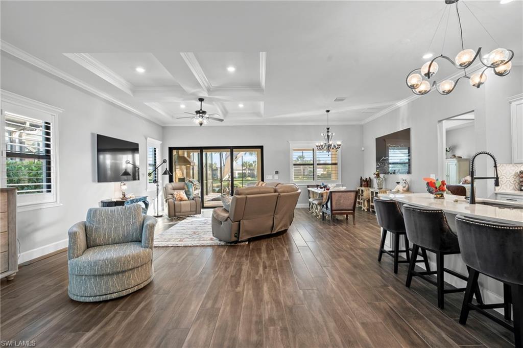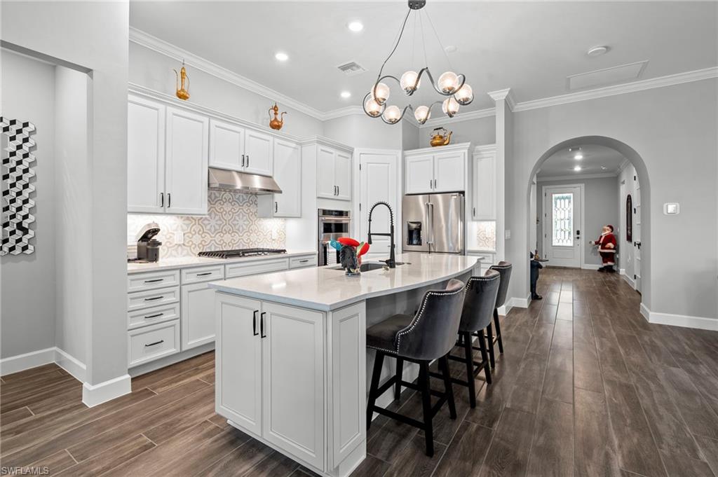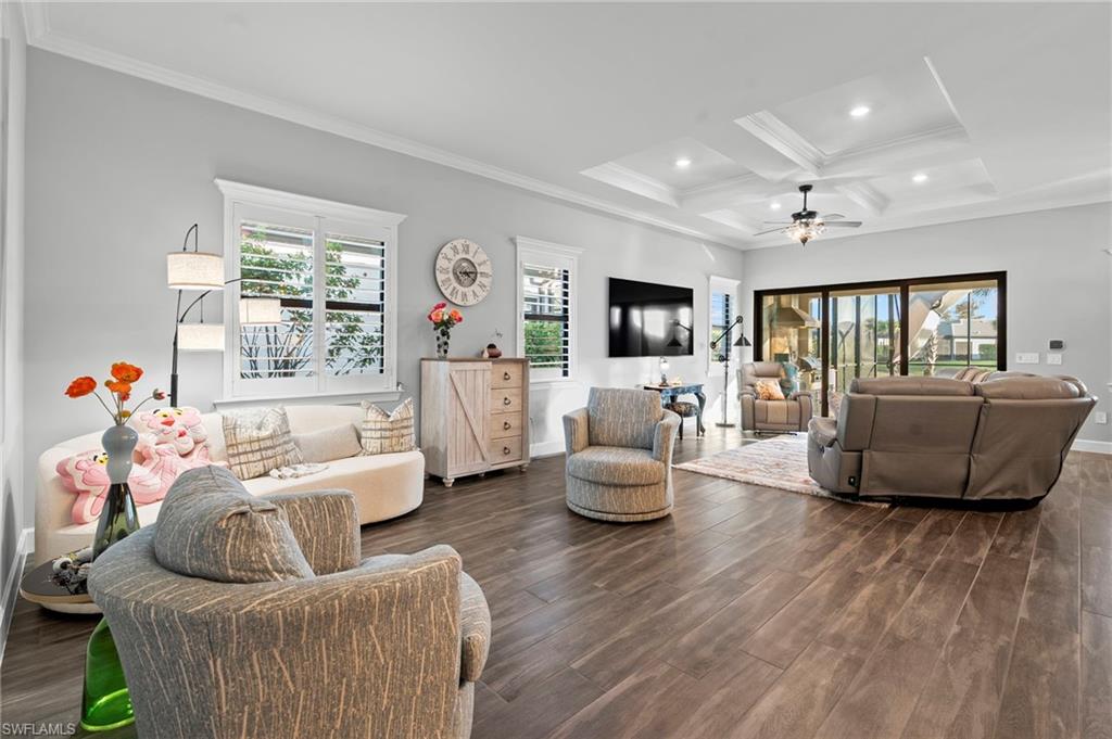 This Greyhawk Golf Club of The Everglades home represents luxury and functional engineering, characterized by significant structural enhancements and a meticulous selection of premium finishes that elevate it far beyond standard new construction. The property’s utility begins in the highly specialized garage, which was upgraded to be four feet longer than the traditional footprint, providing ample depth for oversized vehicles or a dedicated workshop. This space is fully climate-controlled via an AC mini-split system and an insulated garage door, further enhanced by professional epoxy flooring, a French Cleat Wall Mount System for organization, a dedicated utility sink, and a high-end Kinetico water filtration system. These structural expansions continue into the main living areas, where the lanai sliders were strategically pushed outward to maximize "under air" square footage, seamlessly integrating the interior with the expanded outdoor living space. Throughout the home, architectural sophistication is showcased in the custom tray ceilings found in the living room, den, and master suite, while premium plantation shutters and a combination of upgraded tile and engineered hardwood flooring provide a cohesive and elegant aesthetic. A culmination of $300,000 in builder upgrades! The heart of the home is a gourmet kitchen tailored for the culinary enthusiast, featuring natural gas connectivity for the professional-grade range and a full suite of upgraded KitchenAid appliances, including an enhanced microwave oven. Organization is prioritized through custom sliding shelves within the cabinetry, a granite sink, and a bespoke shelving system in the pantry. This commitment to storage and efficiency is mirrored in the bathrooms, which feature significantly increased storage capacity, and the secondary bedrooms, which include custom closet shelving. The master suite serves as a private sanctuary, defined by its massive walk-in closet outfitted with a comprehensive custom cabinet system and a spa-inspired bathroom featuring upgraded tile, dual sinks, premium Moen fixtures, and an elongated shower equipped with a built-in bench. The luxury experience culminates in the exterior living space, which features a deeper-than-standard lanai and a front lanai that was enlarged as part of the home’s structural footprint expansion. The outdoor environment is anchored by a professional-grade summer kitchen, complete with granite countertops, a refrigerator, a full exhaust hood, and a high-performance gas grill featuring a specialized side pot burner. This outdoor oasis overlooks an oversized, heated saltwater pool and integrated spa, both powered by natural gas to ensure rapid heating and year-round enjoyment. From the quartz countertops and Moen fixtures to the engineered structural expansions, every detail of this home has been thoughtfully curated to offer an unparalleled standard of living that balances industrial-grade utility with refined domestic comfort.