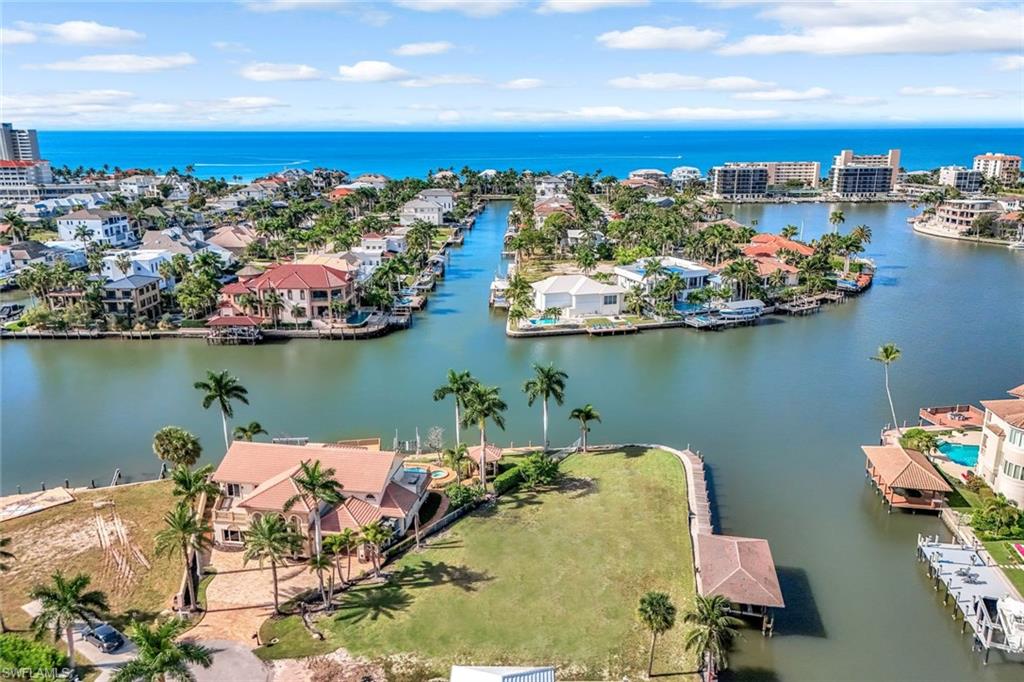 A once in a generation opportunity to own this exceptional point lot in Vanderbilt Conners! One of the largest waterfront parcels in the entire community with double the size of a typical lot. Commanding over 180 ft of sparkling water views. This exceptional .45 half-acre point lot delivers wide bay views, unmatched privacy, scale, and design potential. This wraparound waterfront lot has a “grandfathered in” boathouse which will not impede your views from your future home. Also additional water frontage for expansive dock that becomes a true extension of your backyard or for additional vessels. Perfectly located at the end of a quiet cul-de-sac offering sparkling water views with a peaceful backdrop of intersecting waterways, palm trees and amazing sunsets! Direct Gulf access coupled with spectacular sunsets in the Western skyline making it a dream setting for boating enthusiasts and waterfront visionaries alike. Walkable coastal lifestyle at Vanderbilt Beach, enjoy The Ritz Carlton, La Playa Beach & Golf Resort, New Center with 8 Har-Tru tennis courts and 20 pickleball courts, Whole Foods and Mercato’s premier dining and shopping. Unparalleled lifestyle conveniently located to the beach, the Ritz-Carlton, Mercato Shops, La Playa Beach club, public tennis courts and 20 pickleball courts plus plethora of dining options including beachfront dining at the Turtle Club, Baleen and the Ritz-Carlton’s Dusk and Gumbo Limbo. Fully engineered plans by award winning MHk Architech could be available. This offers a combination of time savings and accelerated build potential a tremendous advantage for any homeowner looking to begin their custom masterpiece immediately.