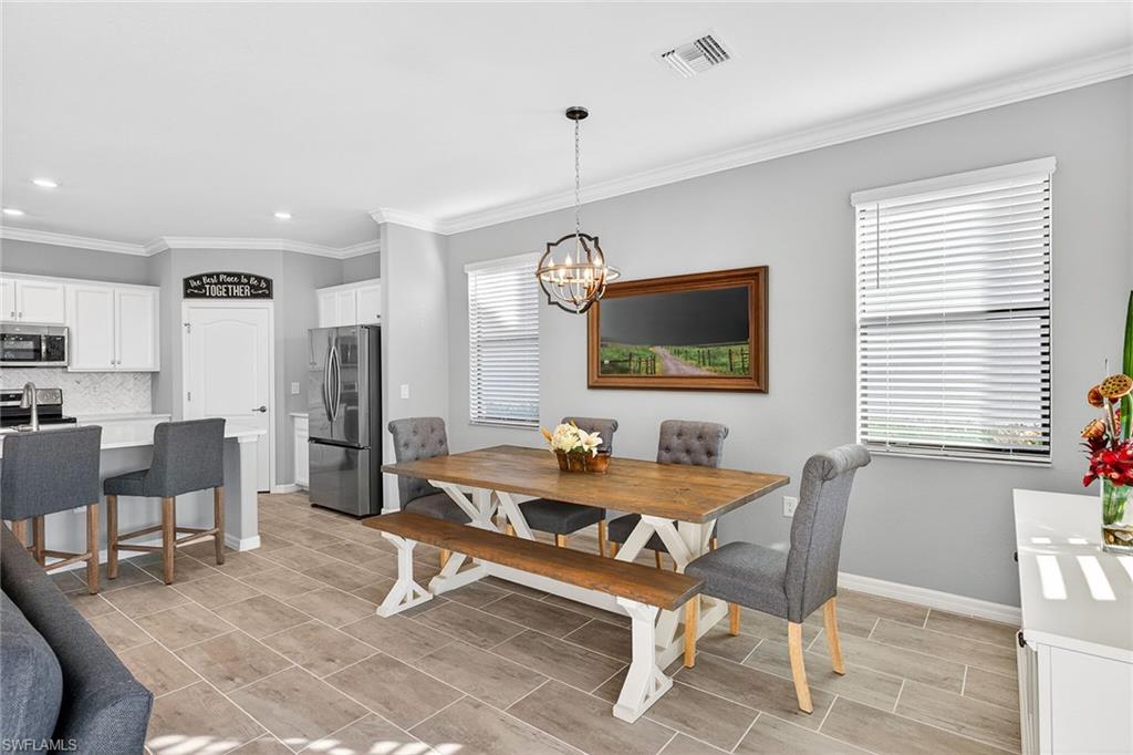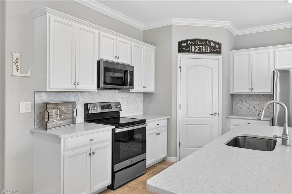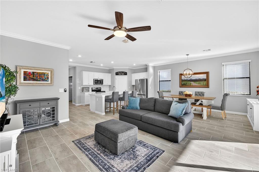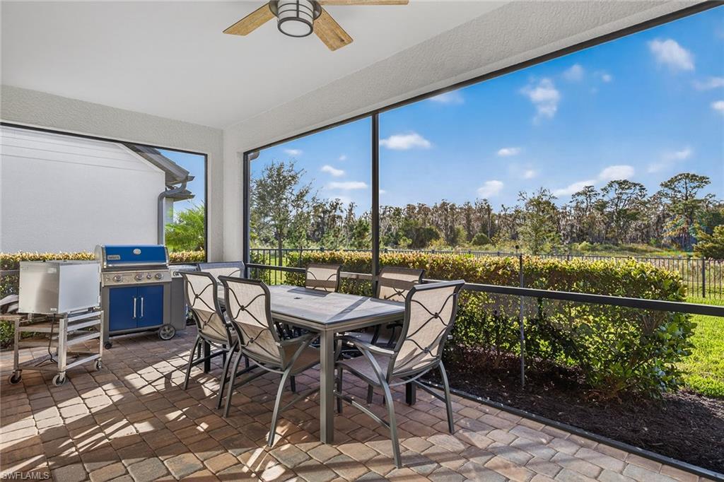 Welcome to this value-positioned residence in The Place at Corkscrew, a gated, resort-lifestyle community known for its extensive amenities and family-focused living. Built in 2020, this Marsala floor plan offers three bedrooms, three full baths and 2,202 square feet of well-planned interior space, all set on a preserve lot that delivers privacy and natural views. At the heart of the home, the open-concept kitchen has been thoughtfully updated with quartz countertops, a marble backsplash, a single-basin sink, and a spacious walk-in pantry. The kitchen seamlessly connects to the dining area and family room, offering a layout ideal for entertaining or everyday comfort. Crown molding and 12-by-18-inch porcelain tile flooring extend throughout the main living spaces, adding to the home’s elegant, cohesive feel. The primary suite serves as a private retreat, complete with two walk-in closets, dual vanities, a soaking tub and a separate walk-in shower. Two additional guest bedrooms are positioned for privacy, with one featuring an en-suite bath and the other a walk-in closet. A separate den offers flexible space for a home office, media room or play area. The exterior of the home offers practical and thoughtful features that add function and appeal. Highlights include new gutters, an aluminum-fenced backyard, and an oversized driveway that enhances curb appeal and provides additional parking. The garage includes a painted floor and built-in shelving for organized storage. Backing up to a preserve, the fully fenced backyard delivers a peaceful outdoor setting with ample room for future customization. Just eight miles from Interstate 75, this residence is ideal for commuting professionals and families alike. Residents of The Place at Corkscrew enjoy access to a robust amenity package including a restaurant, café, fitness center, resort-style pool with waterslide, tennis and pickleball courts, and a staffed gatehouse. This property presents a compelling value in today’s market, with immediate move-in potential and a thoughtfully maintained presentation that aligns with expectations of today’s discerning buyer.