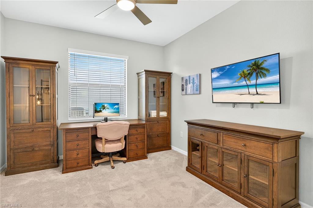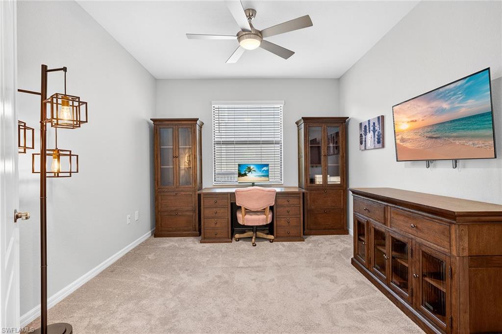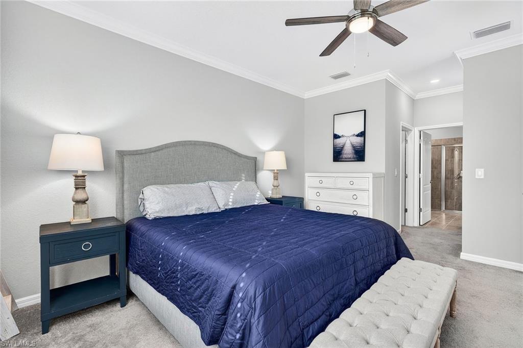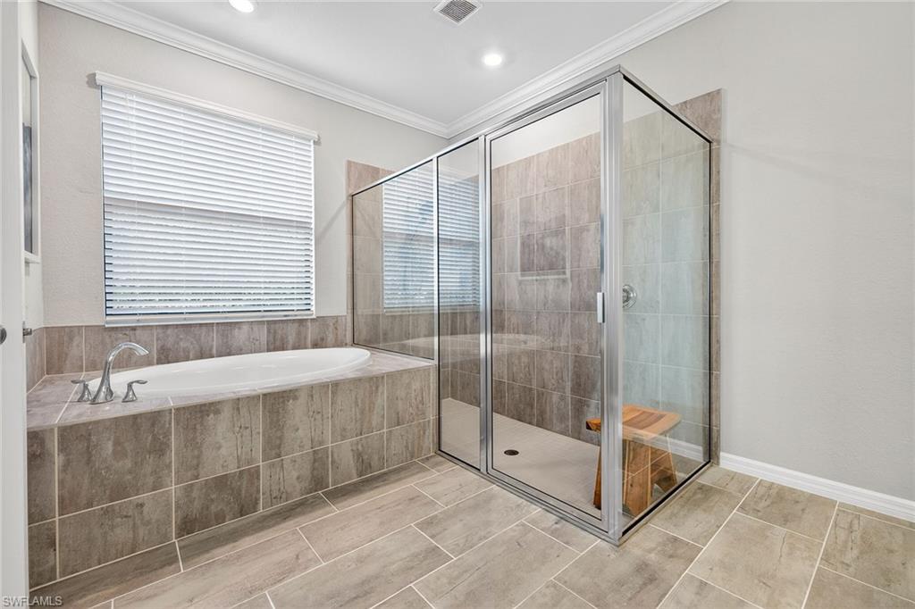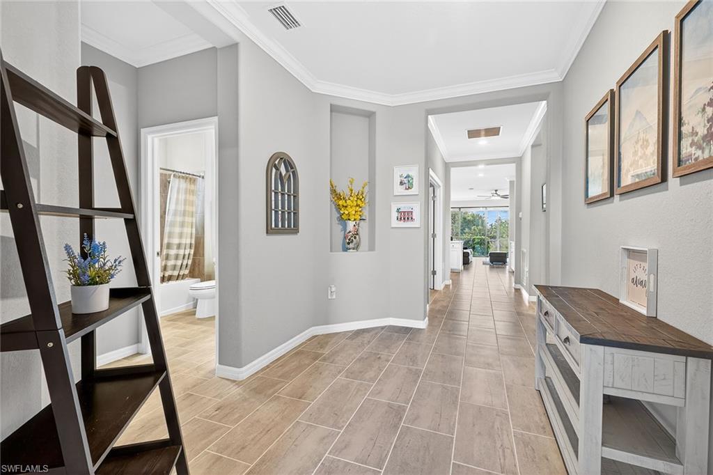 Welcome to this value-positioned residence in The Place at Corkscrew, a gated, resort-lifestyle community known for its extensive amenities and family-focused living. Built in 2020, this Marsala floor plan offers three bedrooms, three full baths and 2,202 square feet of well-planned interior space, all set on a preserve lot that delivers privacy and natural views. At the heart of the home, the open-concept kitchen has been thoughtfully updated with quartz countertops, a marble backsplash, a single-basin sink, and a spacious walk-in pantry. The kitchen seamlessly connects to the dining area and family room, offering a layout ideal for entertaining or everyday comfort. Crown molding and 12-by-18-inch porcelain tile flooring extend throughout the main living spaces, adding to the home’s elegant, cohesive feel. The primary suite serves as a private retreat, complete with two walk-in closets, dual vanities, a soaking tub and a separate walk-in shower. Two additional guest bedrooms are positioned for privacy, with one featuring an en-suite bath and the other a walk-in closet. A separate den offers flexible space for a home office, media room or play area. The exterior of the home offers practical and thoughtful features that add function and appeal. Highlights include new gutters, an aluminum-fenced backyard, and an oversized driveway that enhances curb appeal and provides additional parking. The garage includes a painted floor and built-in shelving for organized storage. Backing up to a preserve, the fully fenced backyard delivers a peaceful outdoor setting with ample room for future customization. Just eight miles from Interstate 75, this residence is ideal for commuting professionals and families alike. Residents of The Place at Corkscrew enjoy access to a robust amenity package including a restaurant, café, fitness center, resort-style pool with waterslide, tennis and pickleball courts, and a staffed gatehouse. This property presents a compelling value in today’s market, with immediate move-in potential and a thoughtfully maintained presentation that aligns with expectations of today’s discerning buyer.