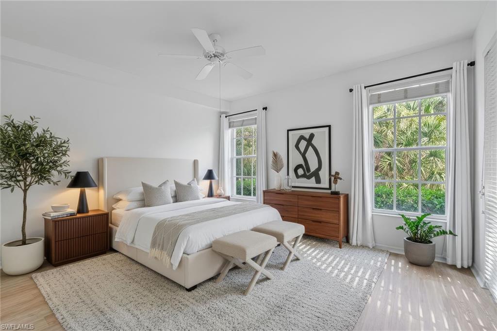 Outstanding value and priced to sell quickly! HOA fees include nearly everything (water, cable, Wi-Fi) with exception of electricity. This bright end-unit garden oasis showcases a striking wall of windows that fill the property with an abundance of natural light while framing lush greenery and preserve views from nearly every room. Go inside to discover an open airy floor plan with volume ceilings, tile and luxury vinyl flooring, and a guest bedroom and bath on opposite side of the residence, providing comfort and privacy for visitors. The open-concept kitchen is stylish and functional, featuring a 2024 stove, walk-in pantry, center island and breakfast bar, recessed lighting, pot filler, new garbage disposal, and an upgraded Aquasana three-tank water filtration system. The spacious primary suite overlooks the preserve and offers a relaxing retreat with a large walk-in closet, dual sinks, a separate soaking tub and walk-in shower, recessed lighting and a private water closet. Enjoy peace of mind with recent updates, including a 2022 air-conditioning system, 2024 water heater and new dryer. Additional highlights include a pristine one-car attached garage with a new Chamberlain garage door opener system and rollers, and a screened lanai, ideal for taking in the gorgeous surroundings. Residents of Pelican Landing enjoy an unparalleled lifestyle with access to a private beach park on Big Hickory Island, sailing, kayaking (two kayak launches with equipment and attendants), a full-service marina, state-of-the-art fitness center, tennis and pickleball, bocce, a beautiful butterfly garden, and miles of scenic recreational and biking trails.