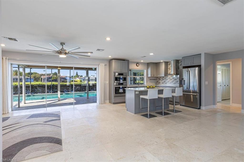 Discover the perfect balance of comfort, privacy and Florida charm in this beautifully updated single family home tucked away on a peaceful interior street. Every upgrade has been thoughtfully chosen to make daily living effortless and relaxing - from the hurricane impact windows to the modern travertine floors that flow throughout the home. The owners have done all the major work so a buyer can just move right in and start enjoying the Florida lifestyle. Roof, gutters and downspouts, and lanai screens were all replaced in October, 2025. The home was termite tented, and a new main electrical panel, upgraded 200 amp breaker and feeder in August, 2025. Water heater, main water valve shut off and spigot replaced 2025. Pool pump and motor replaced 2024. A/C replaced in 2021 and compressor unit, air handler and some ductwork repositioned for better efficiancy. The heart of the home flows effortlessly to the screened lanai and private pool, where panoramic water views create the perfect backdrop for viewing nature consisting of otters, turtles and exotic birds or evening cocktails with stunning sunsets. The Lakewood community is just minutes to Sugden Regional Park, The Bayshore Arts District, Tin City, 5th Avenue, Third Street, Naples Pier and the pristine Naples Beaches.