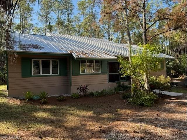 This exceptional Collier Woods home with highly desirous southern exposure on 2.81 acres is conveniently located west of Collier Blvd. This beautifully maintained property offers a long curved driveway directing you to the 3 bedroom and 2 bath 2174 sf home with vaulted ceilings all leading to the vaulted ceiling oversized screened lanai and brick paver firepit and grill area beyond. The property also boasts a 792 sf guest house with full kitchen and screened lanai, all of which can be used for guests, family or office. The property also has separate garage/shop, covered areas for boat storage, property equipment storage and additional covered RV structure. The property has more than ample space for a pool with easy access. The main home has a standing seam metal roof, other buildings have V crimp metal roofing, combination impact windows and operative window shutter protection and many other features worth seeing. Do yourself a favor, don’t overlook this property.