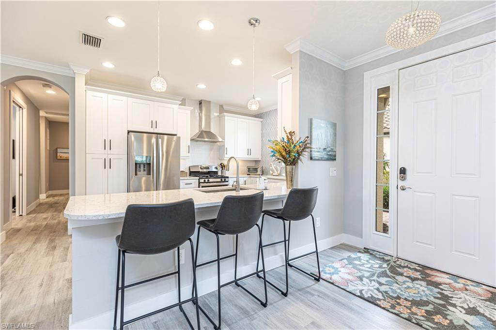 If you've been waiting for the perfect moment to buy in Naples Florida, The Time Is Now! You will fall in love the moment you enter this highly upgraded, move in ready home in one of Naples most sought-after gated communities. The gourmet kitchen is a chef’s dream with gorgeous Pompeii Quartz countertops, a gas stove, built in microwave drawer and stainless steel appliances. Host family dinner parties in the adjacent spacious dining room. You will love the open floor plan with Cortex luxury vinyl flooring, crown molding and 10 foot ceilings. The flexible den/home office provides a quiet workspace or an additional room for guests. The owner’s suite features a new walk-in shower with a glass enclosure, double sinks and a huge walk-in closet. The split-bedroom layout provides privacy and includes two guest bedrooms with a large bath and double sinks. Step outside to your own private oasis perfect for soaking up the Florida sunshine or unwinding after a long day. Relax and entertain on the screened lanai or cool off in your private inground pool. The spacious 2-car garage offers plenty of storage. Esplanade at Hacienda Lakes offers resort-style amenities with a clubhouse hosting many social events, fitness center, a heated resort-style pool and spa with cabanas, a fire pit, tennis, lighted pickleball courts, a playground and a dog park. Ideally located just minutes to Naples famous 5th Avenue & Third Street South with world-class restaurants, shopping and beaches. You are just a short drive to the beautiful beaches of Marco Island and the many restaurants and activities on Marco and Isles of Capri. This is the opportunity you've been waiting for to live the Naples lifestyle you deserve!