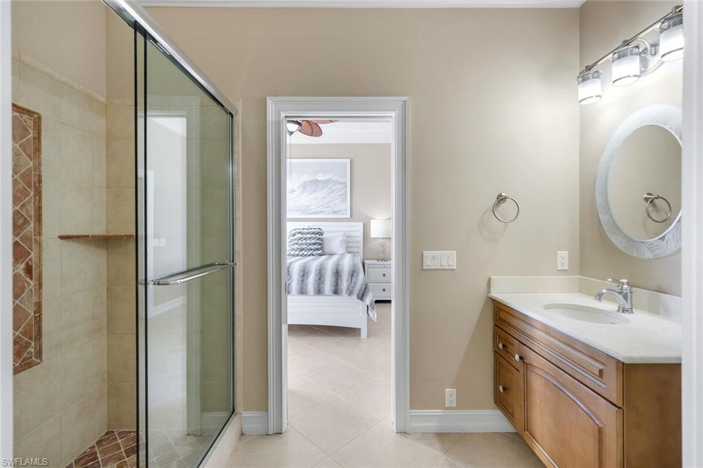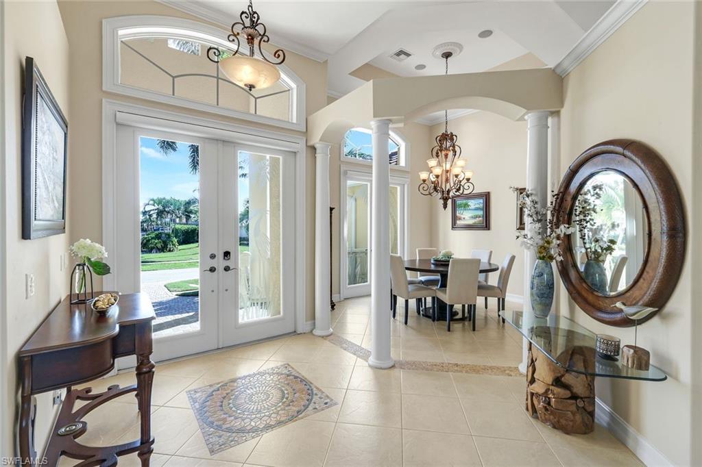 Spacious 7-bedroom, 4-bath Marco Island home offering exceptional flexibility for a variety of living needs. The layout includes seven total rooms designed for sleeping or enclosed use, with one currently set up as a dedicated media room and another as an office. A rare 4-car garage - with the fourth bay finished as a mancave/workshop and featuring a rear-facing overhead door, a two-sided fireplace - connecting the formal sitting area and primary suite, and two primary closets- including an oversized 10×10 closet add to the home’s unique features. Furnishings throughout are included, with a few items removable upon request. The main level features bright, open living areas and seamless flow to multiple indoor/outdoor entertaining spaces. The backyard offers long canal views, excellent privacy, and numerous seating and dining zones. Upstairs bedrooms (3) and loft provide further flexibility for guests or additional functional space. Features include smart lighting, whole-house sound, and central vacuum. Located steps from Leigh Plummer Park and approximately one mile from shops, dining, and grocery options, with convenient access to the front of the island.