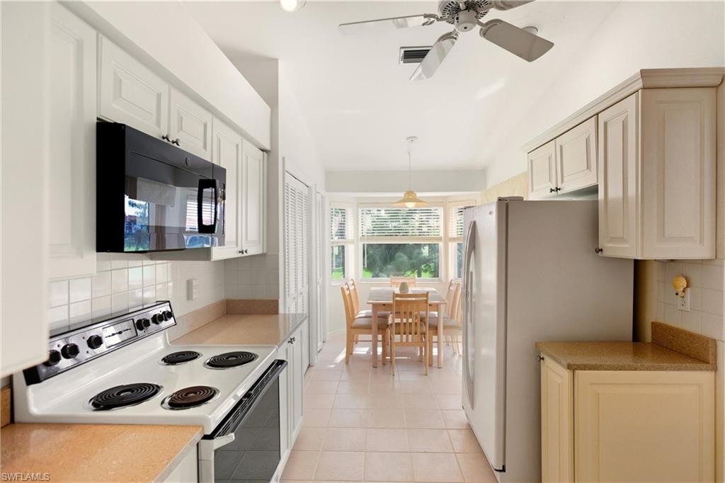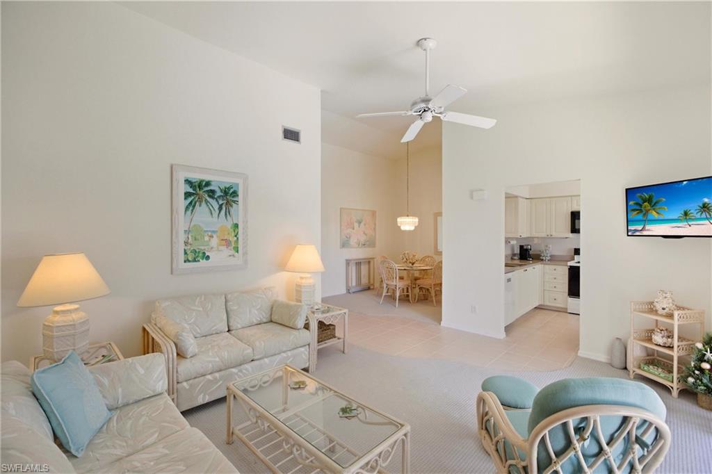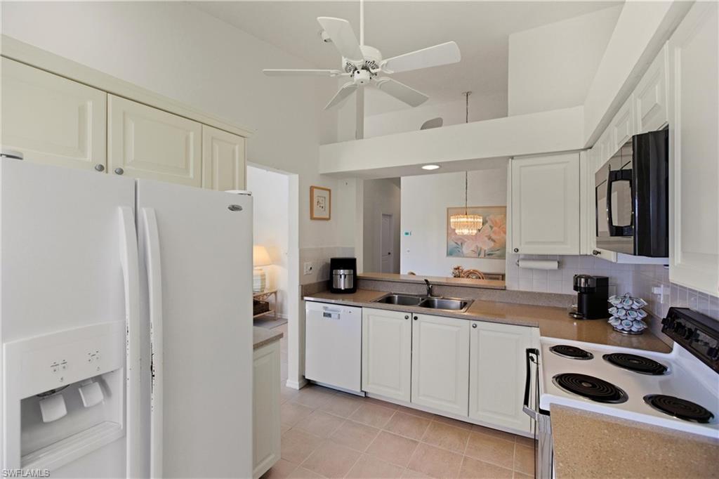 Country Glen is part of Countryside Golf and Country Club, a very active golf community in a great central Naples location. This condo has been owned by the original family since day one and has only been used seasonally. Never rented and it shows. This is a turnkey furnished and move-in ready two bedroom and two bath condo with vaulted ceilings and no one above you. There is elevator access to the third floor, so you get the top floor benefits without the stairs. Enjoy panoramic golf course views from the living room. The sellers can leave it turnkey for a quick and easy move in or they will remove the contents if a buyer prefers an empty space. Just steps from your front door you will find the Country Glen pool and spa, party room, bocce, and both pickleball and tennis. The HVAC was installed in 2022 and the hot water heater was replaced in 2019. The kitchen features updated cabinets and solid surface countertops for a clean and updated look. Washer and dryer are included and a covered carport space comes with it. A social membership is included. You can enjoy the amenities and golf is available based on availability with green and cart fees. The Countryside master HOA recently wrapped up a major renovation that added new indoor dining, a sports bar, a pool cafe, outdoor dining spaces, a resort style pool and spa, lighted pickleball courts, lighted bocce courts, and lighted tennis courts. The fitness center is modern and impressive, and the community as a whole is very active and friendly. The location is convenient with access through the Davis Boulevard gate or the owners only back gate on Radio Road. Country Glen is close to the Radio Road exit, making it easy to get to Publix, Starbucks, restaurants, and shopping. It is a comfortable place to enjoy the Naples lifestyle without the congestion.