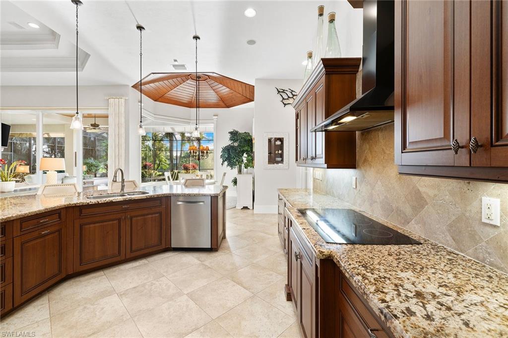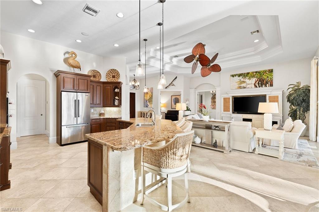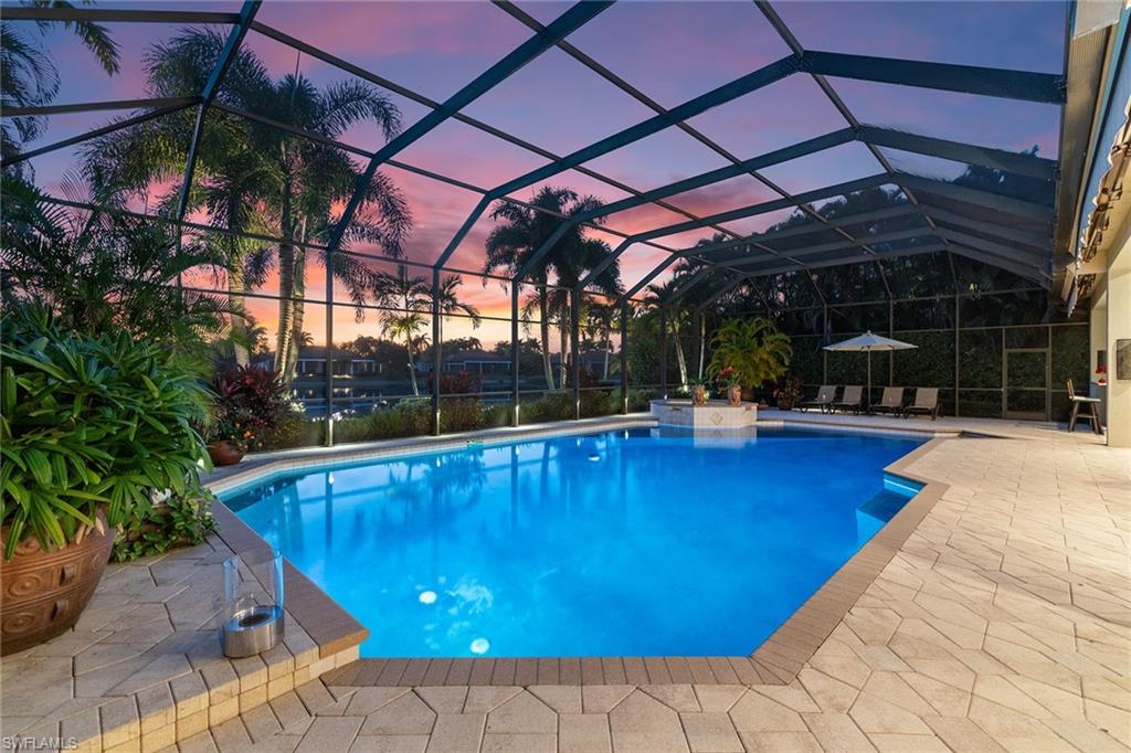 Welcome to the private guard-gated Classics Plantation Estates, where refined luxury meets effortless Florida living in the heart of Lely Resort, complete with immediate membership to The Player’s Club & Spa. Set on one of the largest and most private lakefront homesites in the Classics, this remarkable .51-acre estate is surrounded by lush, mature palms and trees, offering an unparalleled sense of space, serenity and complete privacy. Custom built by Lundstrom Homes, this exceptional three-bedroom-plus-den, three-bath residence is thoughtfully designed with a spacious, open-concept layout that flows seamlessly from indoor elegance to extraordinary outdoor living, making it an entertainer’s dream. A circular drive, oversized three-car garage and impeccable curb appeal set the tone upon arrival. Go outside to a spectacular outdoor retreat. The expansive lanai showcases a resort-style pool measuring an impressive 22-by-44 feet with a 9-foot depth, ideal for swimming, entertaining or simply relaxing beneath the large retractable electric awnings. A custom outdoor kitchen, abundant seating areas, tongue and groove hardwood ceilings and breathtaking sunset lake views create a backdrop for unforgettable evenings. Inside, refined upgrades abound, including plantation shutters, volume ceilings, premium granite finishes, upgraded appliances and spacious bedrooms, which are perfect for hosting. Recent enhancements provide peace of mind, including new water heaters, new washer and dryer, new pool heater, and new roof and gutter systems. Additional features include a side-yard dog run and an oversized three-vehicle garage with one bay measuring 30 feet deep by 10 feet wide by 10 feet high, ideal for larger vehicles or extra storage. In sunny Naples, this home offers convenient access to pristine beaches, world-class dining and shopping, all just minutes from downtown Naples iconic 5th Avenue and 3rd Street districts as well as Marco Island. This is more than a home, it’s a private estate designed for exceptional living, entertaining and unforgettable sunsets.
