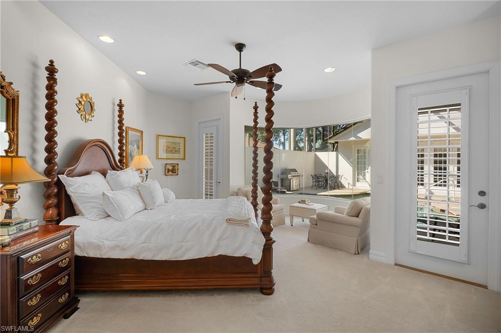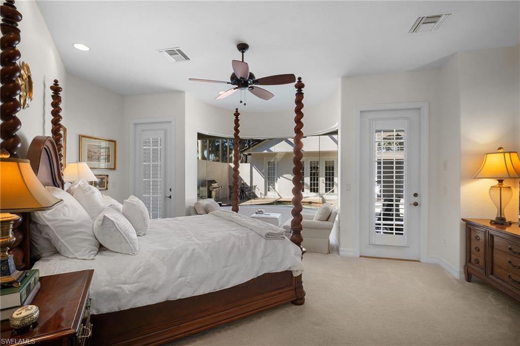 Welcome home to the tranquility and privacy of this beautifully designed Courtyard residence. Thoughtfully crafted for comfort and versatility, this home offers three split bedroom wings, each with its own full bath, including two ensuites—perfect for guests, multi-generational living, or a home office setup. Courtyard pool for privacy, Detached Cabana in courtyard for Guests or work from home/business. Parlor/Sitting room golf course view. Experience Serenity and Flexibility in This Exceptional Courtyard Home The cabana suite, complete with its own HVAC system, adds even more flexibility—ideal for visiting family, in-laws, or a private workspace. Step inside and be greeted by stunning 14-foot ceilings in the main living areas, creating an open and airy ambiance. The home features 4 bedrooms (or 3 plus an office/den), 3 full baths, a powder room, parlor, formal dining room, and an open kitchen with a breakfast area and gathering room. 8-foot doors throughout enhance the home’s sense of scale and sophistication. This custom-built residence boasts numerous upgrades, including premium cabinetry, tile flooring, French doors, and wired sound throughout. The new roof (less than 5 years old) and recent interior and exterior paint ensure peace of mind and a move-in-ready experience. Nestled within the luxurious Palmira Golf and Country Club, you’ll enjoy resort-style amenities and a vibrant community lifestyle. Located in beautiful Bonita Springs, Florida, this home is conveniently close to I-75, fine dining, boutique shopping, gorgeous beaches, and RSW International Airport—everything Southwest Florida has to offer is right at your doorstep. Come home to elegance, comfort, and the lifestyle you deserve.