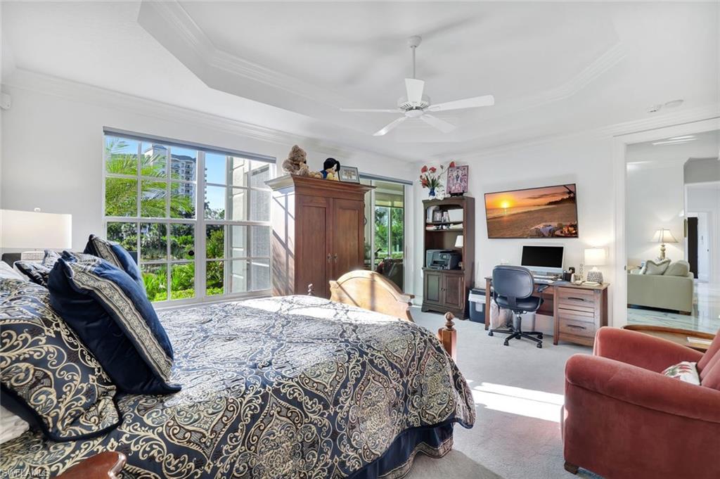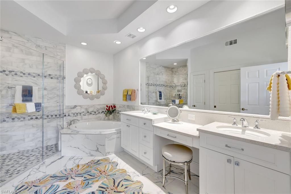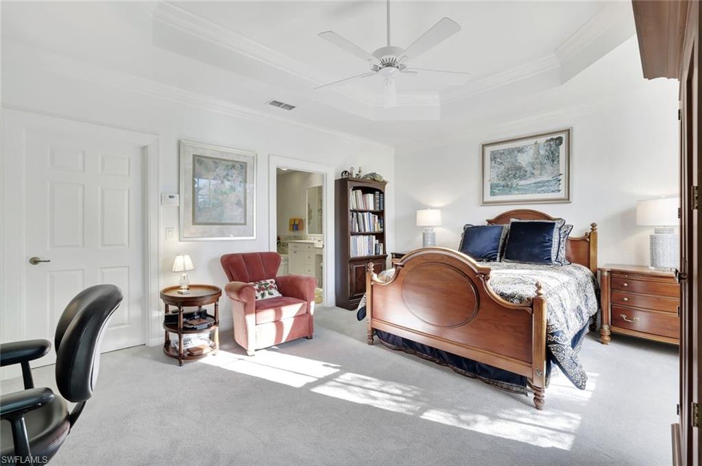 Experience timeless design, refined updates, and resort-style living in this beautifully maintained THREE bedroom, THREE full-bath first-floor coach home in the highly desirable enclave of Egret's Landing within Bonita Bay. Set in a peaceful, lush setting with an exceptional lake view, this spacious residence features elegant improvements throughout and is offered furnished (negotiable) for immediate enjoyment. Inside, the home showcases porcelain tile flooring (2023) in the main living areas, and new carpet in the bedrooms (2023). The large glass enclosed lanai is enhanced with hurricane-impact sliders, providing year-round flexibility and peace of mind. The beautifully refreshed kitchen features newer lower cabinets and stainless-steel appliances (2023), including an induction cooktop, oven, refrigerator, dishwasher, and microwave, along with a newer disposal (2022). Throughout the home, California Closets elevate storage and organization. The Primary Suite is a private retreat with a serene view, a large custom walk-in closet, and a luxurious primary bath offering quartz countertops, dual sinks, a separate vanity area, a soaking tub, and a walk-in shower. Two generous guest suites—each with access to a full bath—ensure comfort and privacy for visitors in the ideal split-bedroom layout. A well-appointed laundry room features new cabinetry, a washer and dryer (2022), and a utility sink. The 2-car garage provides abundant storage and features a new garage door (2023). Important mechanical updates offer true peace of mind, including a newer AC (2019), newer furnace (2019), newer roof (2020), and newer water heater (2023).. Bonita Bay is unparalleled with amenities including the NEW, exclusive Bonita Bay Beach Club, several community parks with tennis, pickleball, bocce courts, kayaks, canoes, boat docks, dog park, 12+ miles of walking/biking paths and more. Enjoy waterfront cuisine at Backwater Jack’s Restaurant and Lounge adjacent to Bonita Bay's Full Service Marina where you can keep your boat or join the Sweetwater Boat Club. Bonita Bay's, second to none, Country Club offers Five Golf Courses, more Restaurants, the Breezeway Pool and Amenity Center, and a variety of sports venues and social events plus State of the Arts Fitness Center and Spa services available with club membership (additional fees). Bonita Bay is close to all that SWFL has to offer—world class dining, shopping, beaches, nature preserves, the burgeoning downtown Bonita Springs, downtown Naples and so much more. A short drive to RSW International Airport. Whether you are searching for a winter retreat or a year-round residence, this home is THE ONE.