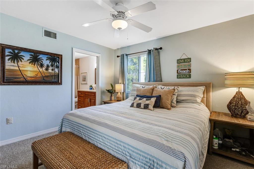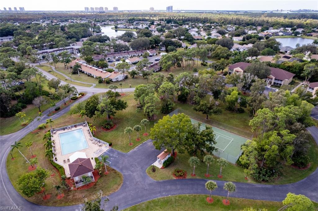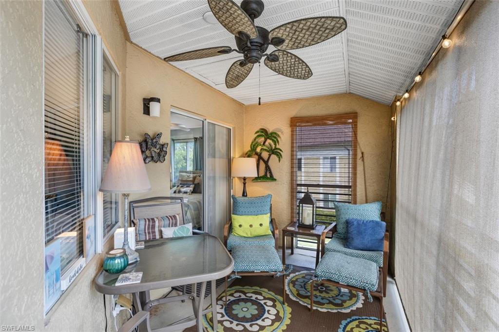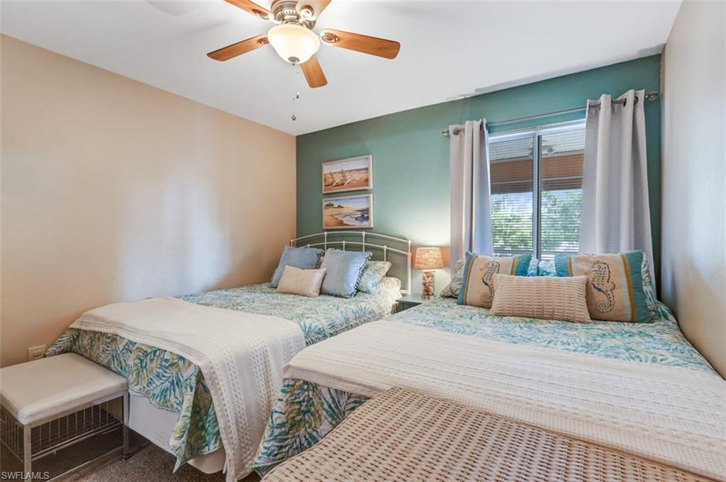 LOCATION, LOCATION, LOCATION! Only 5 miles to the beautiful Gulf beaches, close to shopping, the airport and in FLOOD ZONE X, no flood insurance required! This beautifully remodeled **SECOND-FLOOR END UNIT** is sure to impress from the moment you arrive. The fully remodeled open-concept kitchen features a breakfast bar, granite countertops, and a built-in wine fridge, all accented by fresh interior paint throughout. The master bathroom has been tastefully updated with an elegant upgraded shower and vanity. The spacious floor plan flows effortlessly, now enhanced with new luxury vinyl plank flooring paired with ceramic tile in key areas, creating a modern and cohesive look. Storage is abundant with walk-in closets in both bedrooms, updated plumbing throughout (2024) and a newer air conditioner (2023). Relax on the spacious lanai with your favorite beverage and enjoy the tranquil surroundings. Fountain Lakes offers a wealth of amenities, including a 9-hole golf course, pickleball, tennis, a fitness center, playground, billiards room, picnic area with grills, and a swimming pool—plus an additional pool at The Greens. This beautifully updated, upper end unit truly has it all—don’t miss it!