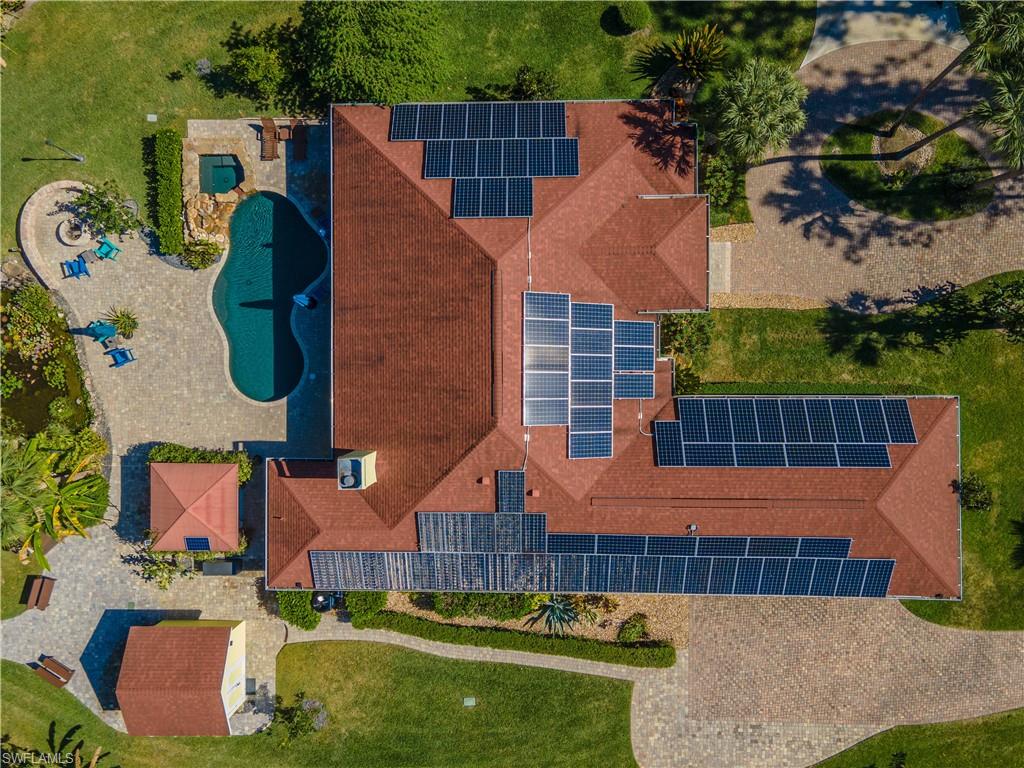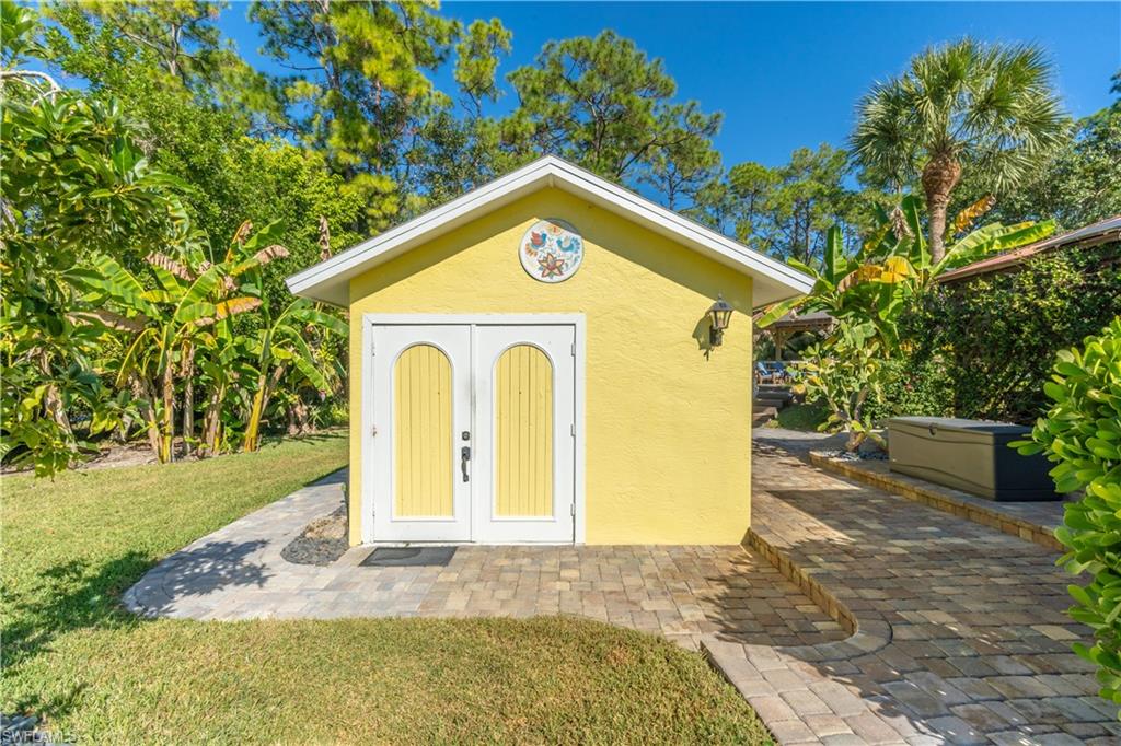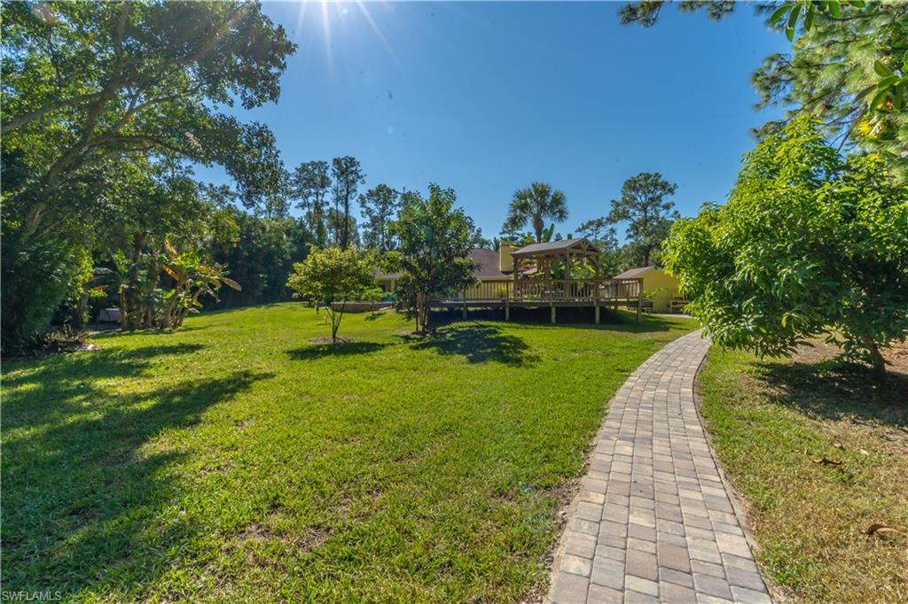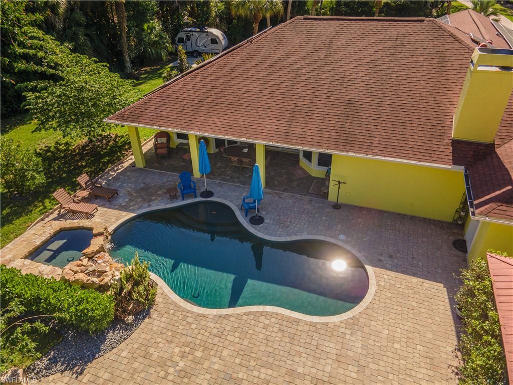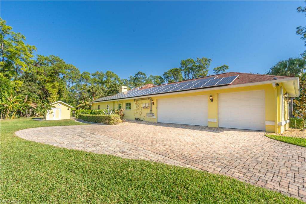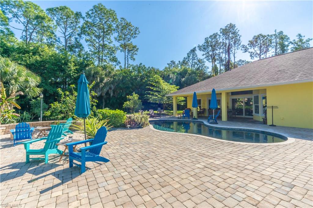 Welcome To Your Private Resort in Naples!!! Imagine waking up in a home where every detail has been curated for comfort, beauty, and independence. This estate blends modern upgrades with natural serenity: engineered wood floors, crown molding, hurricane-rated windows, and a chef’s kitchen with granite island, beverage center, and wine rack. Each of the three bedrooms is ensuite, with the master suite opening directly to the lanai and pool. Step outside to your own tropical resort. Over 4,000 sq. ft. of brick lanai and deck surround a heated Pebble Tec pool and spa. Two gazebos overlook a natural pond and waterfall stocked with tilapia, bass, and bluegill, while lotus flowers and water lilies float across the surface. Evenings are magical by the outdoor firepit, surrounded by bougainvillea, jasmine, and fruit trees including mango, avocado, fig, and mulberry. This property is more than beautiful — it’s resilient. A 21,000-kilowatt solar system with 13,000-kilowatt battery backup, whole-house reverse osmosis, propane storage, and EV charger provide true off-grid capability. Trails, a food forest, wildlife pond, and air rifle range make the back half of the property an adventure all its own. Here, you’re not just buying a home — you’re investing in a lifestyle of peace, natural beauty, and self-sufficiency, all within minutes of Naples’ finest shopping, dining, and beaches.