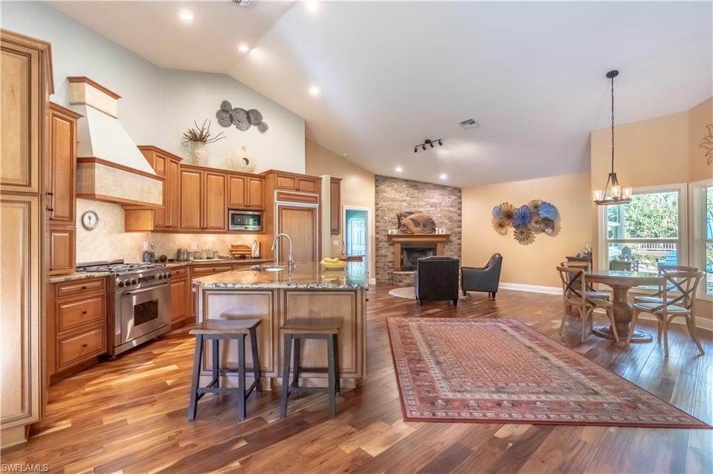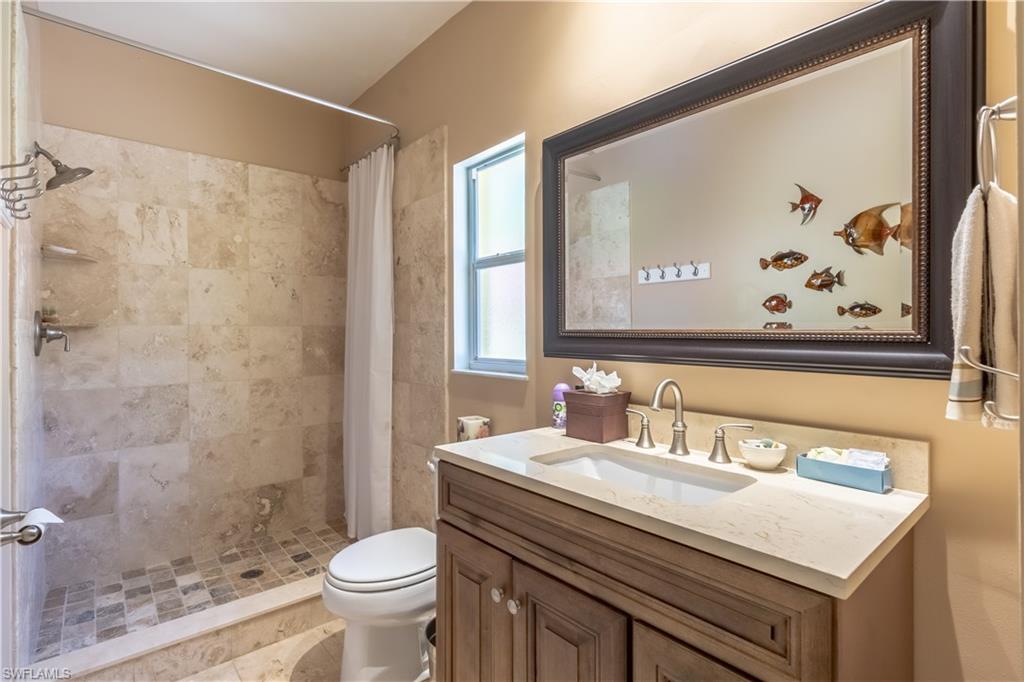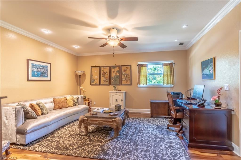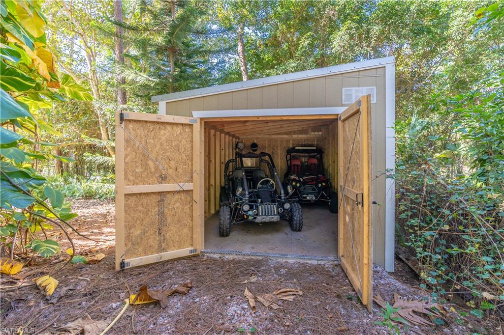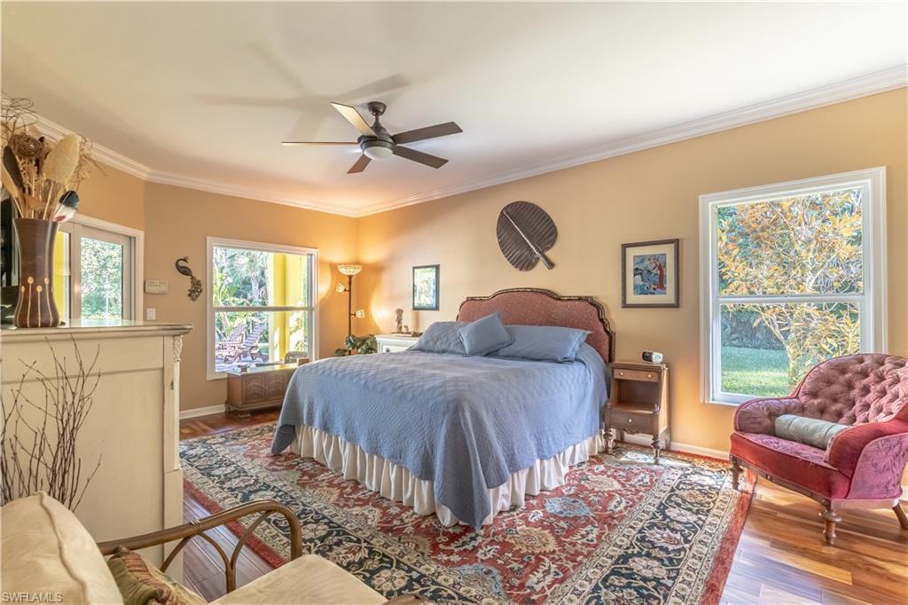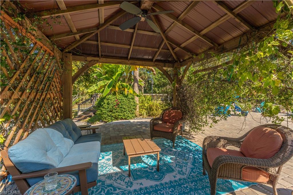 Welcome To Your Private Resort in Naples!!! Imagine waking up in a home where every detail has been curated for comfort, beauty, and independence. This estate blends modern upgrades with natural serenity: engineered wood floors, crown molding, hurricane-rated windows, and a chef’s kitchen with granite island, beverage center, and wine rack. Each of the three bedrooms is ensuite, with the master suite opening directly to the lanai and pool. Step outside to your own tropical resort. Over 4,000 sq. ft. of brick lanai and deck surround a heated Pebble Tec pool and spa. Two gazebos overlook a natural pond and waterfall stocked with tilapia, bass, and bluegill, while lotus flowers and water lilies float across the surface. Evenings are magical by the outdoor firepit, surrounded by bougainvillea, jasmine, and fruit trees including mango, avocado, fig, and mulberry. This property is more than beautiful — it’s resilient. A 21,000-kilowatt solar system with 13,000-kilowatt battery backup, whole-house reverse osmosis, propane storage, and EV charger provide true off-grid capability. Trails, a food forest, wildlife pond, and air rifle range make the back half of the property an adventure all its own. Here, you’re not just buying a home — you’re investing in a lifestyle of peace, natural beauty, and self-sufficiency, all within minutes of Naples’ finest shopping, dining, and beaches.