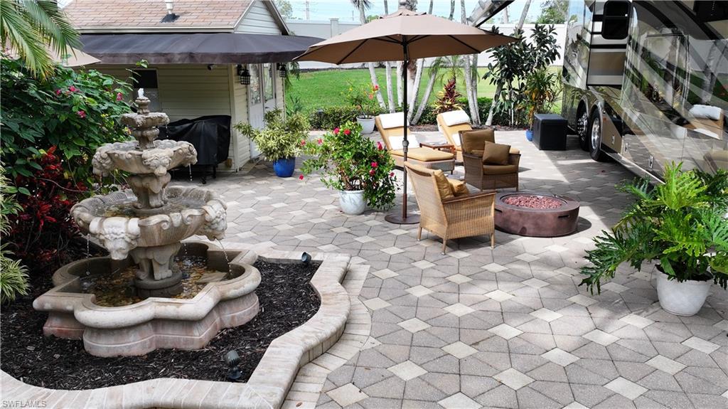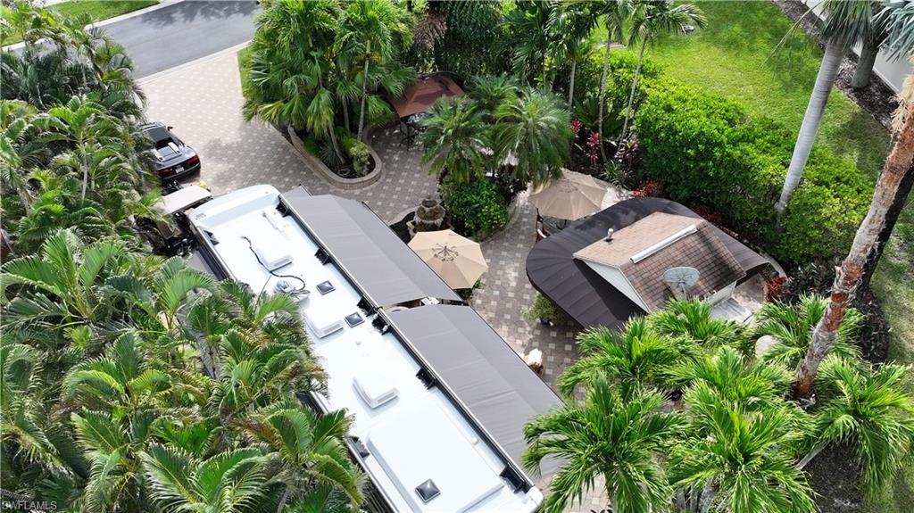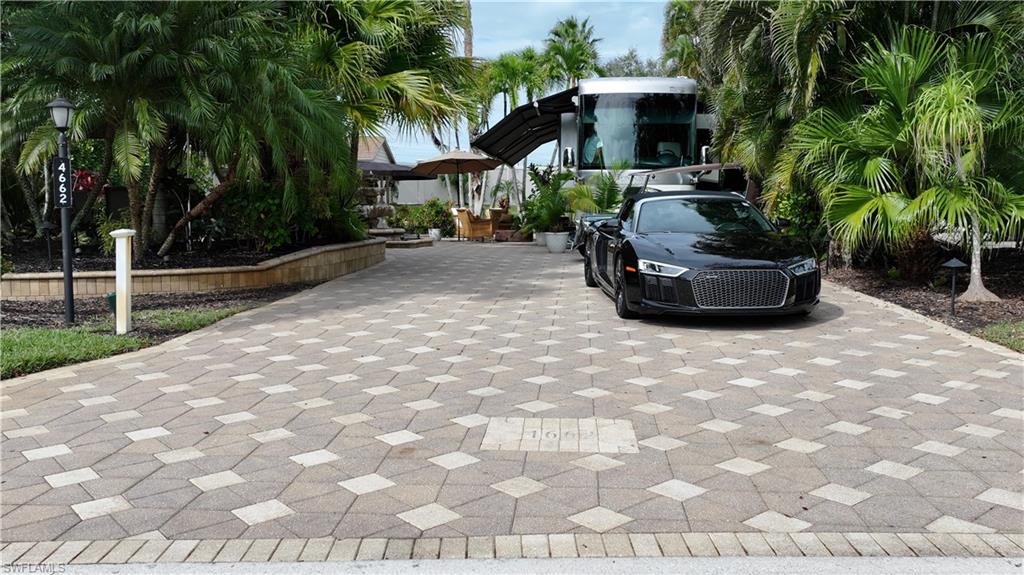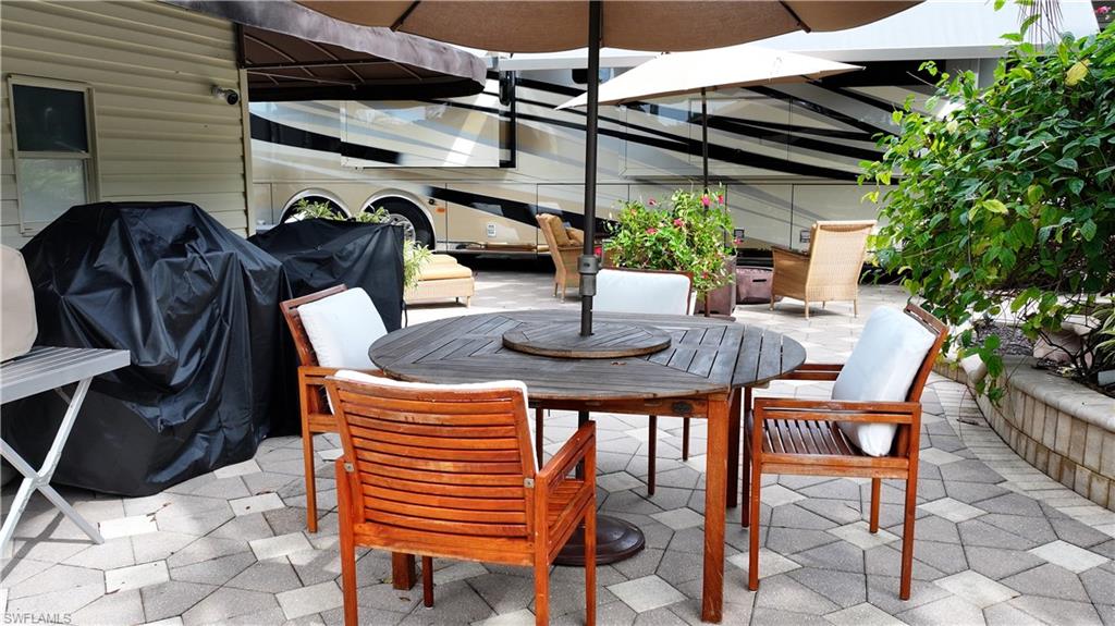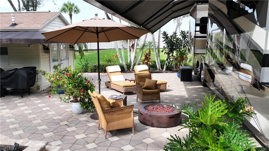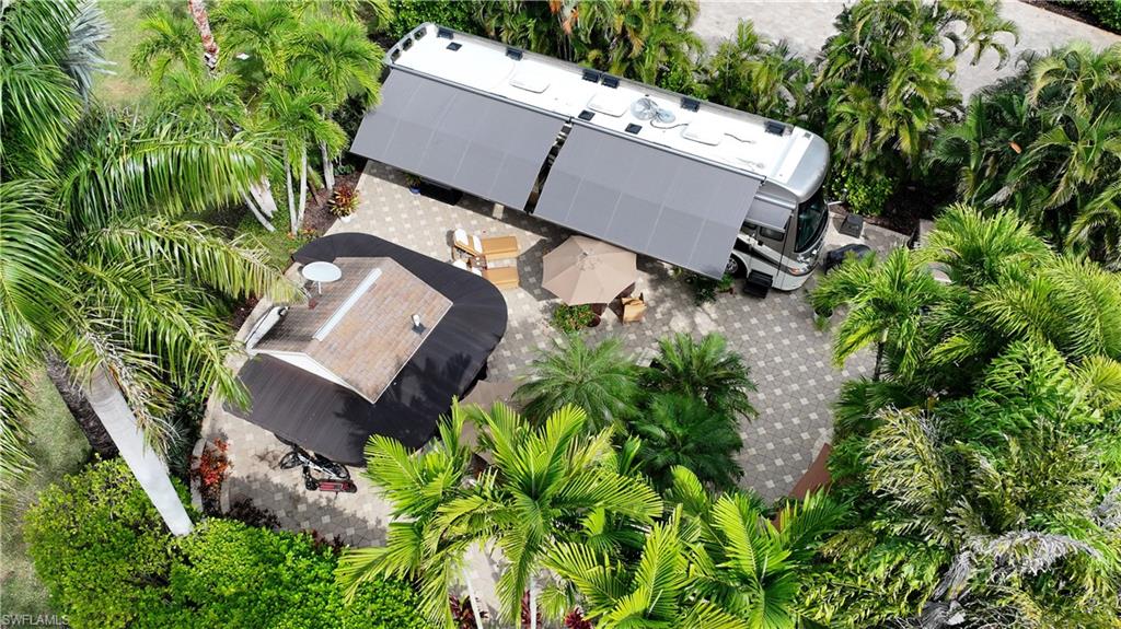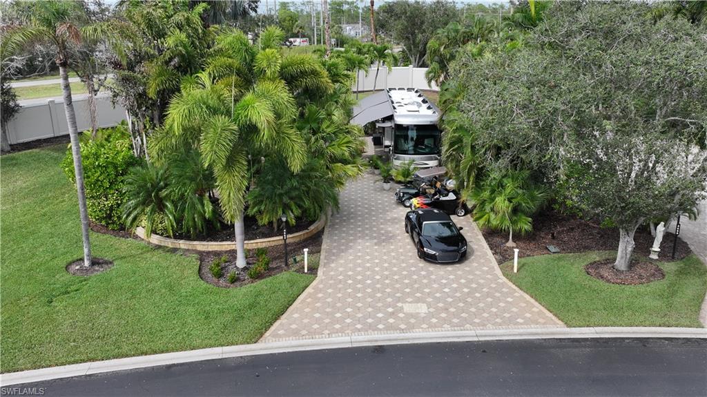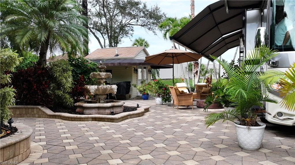 Welcome to 4662 Southern Breeze Drive, an exceptional Class A motorcoach lot located in the prestigious Pelican Lake Motorcoach Resort in Naples, Florida. This beautifully upgraded property offers over 5,100 sq ft of fully pavered space, surrounded by lush tropical landscaping that provides outstanding privacy and shade. With no neighboring lot on the entertainment side, this homesite offers one of the most private outdoor living setups in the resort. The property features a fully finished accessory building equipped with a washer and dryer, toilet, shower, refrigerator, and sink—perfect for added convenience and storage. Additional highlights include raised flower beds, wrap-around awnings, and an east-facing orientation that delivers comfortable mornings and cooler afternoons. Pelican Lake Motorcoach Resort is an exclusive luxury community offering a resort-style clubhouse, heated pool, spa, fitness center, beautiful lakes, and a vibrant social atmosphere. Conveniently located near Naples beaches, dining, and shopping, this property provides the ideal combination of comfort, beauty, and high-end motorcoach living.