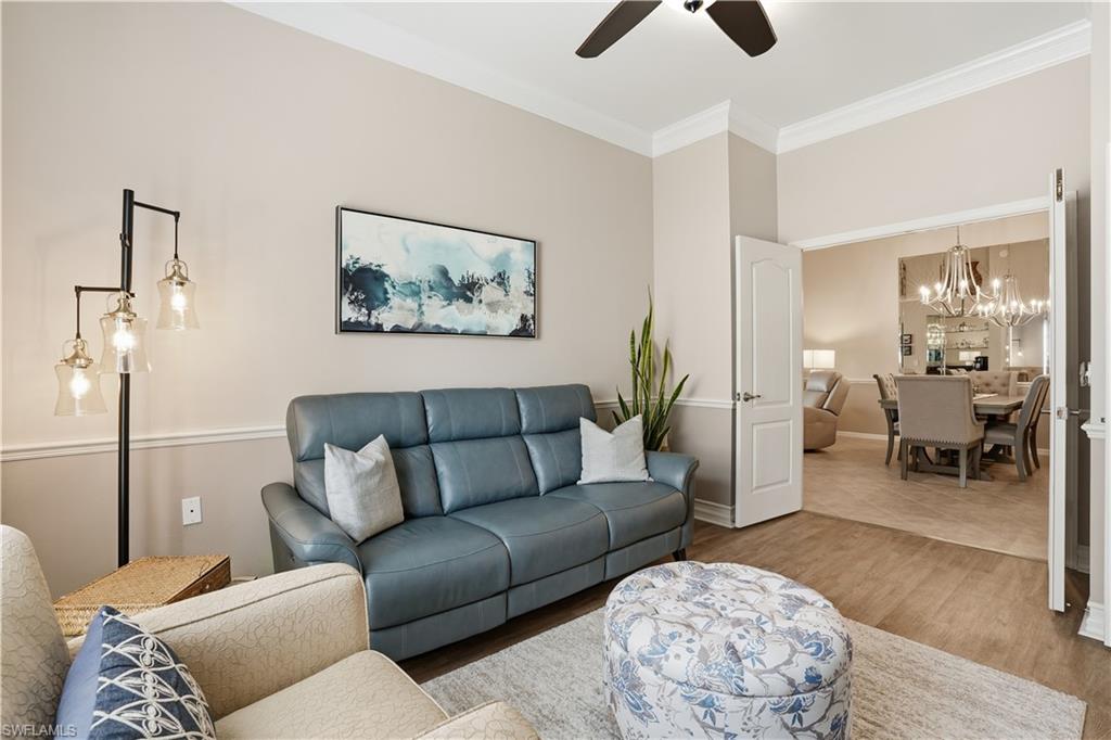 Welcome to this RARELY AVAILABLE top-floor end-unit condo in Cypress Woods Golf & Country Club! This spacious 2-bedroom + den residence offers one of the community’s most desirable floor plans and a generous 1,661 sq ft of beautifully updated living space, a detached one-car garage, and both front and rear lanais for true indoor-outdoor living. Enjoy PEACEFUL GOLF and LAKE VIEWS from the rear lanai and the primary bedroom, which also features private lanai access. The KITCHEN has been thoughtfully RENOVATED with quartz countertops, a stylish backsplash, and stainless-steel appliances. Both BATHROOMS are FULLY UPDATED as well, giving the home a fresh, MOVE-IN READY feel. The den offers flexibility for a home office, extra guests, or a quiet reading space. Cypress Woods is a vibrant, member-focused bundled golf community featuring an 18 hole championship course, NEWLY UPDATED PICKLEBALL, tennis, and bocce courts, a well-equipped fitness center with endless classes, resort-style pool, full-service dining room, and a lively Grille Room & bar. The club hosts a wide variety of events throughout the year, from live music and social gatherings to wine dinners and member activities. Pickleball lovers will appreciate the robust and competitive leagues, while golfers enjoy an active golf calendar with clinics, leagues, and special events. The community also offers miles of walking and biking paths that wind through scenic preserves and continue beyond the gates, connecting to additional trail systems—perfect for biking enthusiasts who want to explore Southwest Florida to their heart’s content. This location is prime: just minutes to I-75 (Exit 111) for easy commuting and a quick drive to RSW Airport, downtown Naples, as well as world-class dining, shopping, and the Gulf beaches. With the current assessment of $3,800 PAID BY SELLER, this fully furnished property is ideal as a full-time residence, seasonal retreat, or investment opportunity. This condo truly offers the very best of the Cypress Woods Country Club lifestyle.