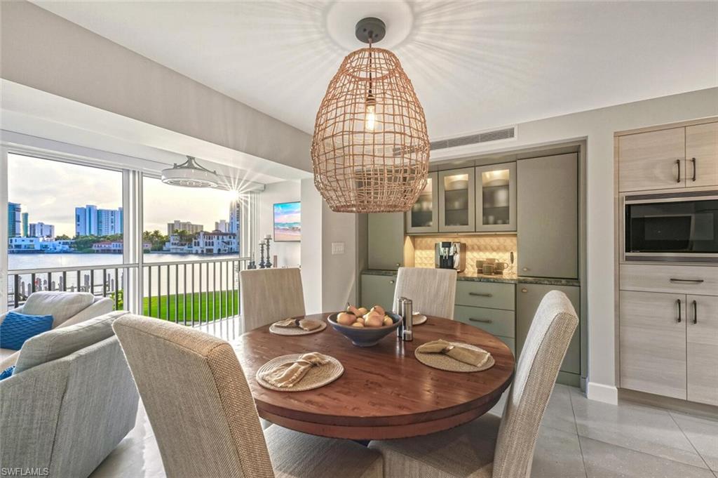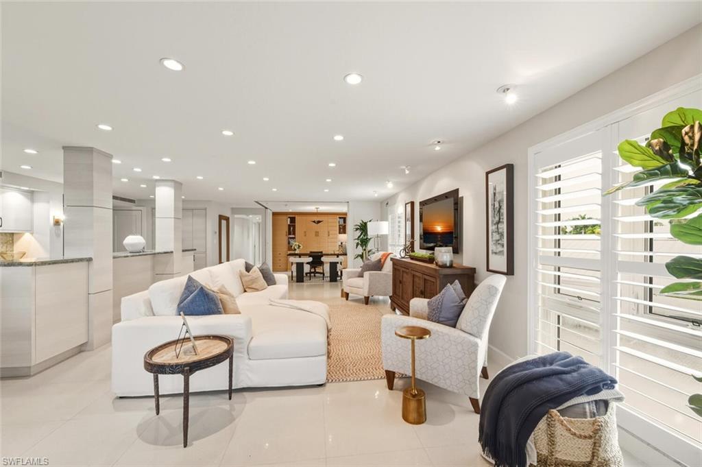 Enjoy stunning Venetian Bay views from this beautifully updated Park Shore condo.Located directly next door to the charming Venetian Village shops and dining,this residence offers unmatched walkability and waterfront living.Upgrades include new electric shades, whole-home filtered water, tankless water heater, plantation shutters,recessed lighting, custom cabinetry, and impact windows/sliders.The kitchen features Wolf and Sub Zero appliances and refrigerator drawers.The open layout offers 3 bedrooms and 3 full baths,with one bedroom easily serving as a home office thanks to a custom Murphy bed and zero-corner doors. Additional highlights include in-unit laundry, a covered carport space, a deeded boat slip with quick Gulf access, and the option to join the Park Shore private Beach Park just down the street. A refined coastal residence with thoughtful upgrades and effortless bayfront living.