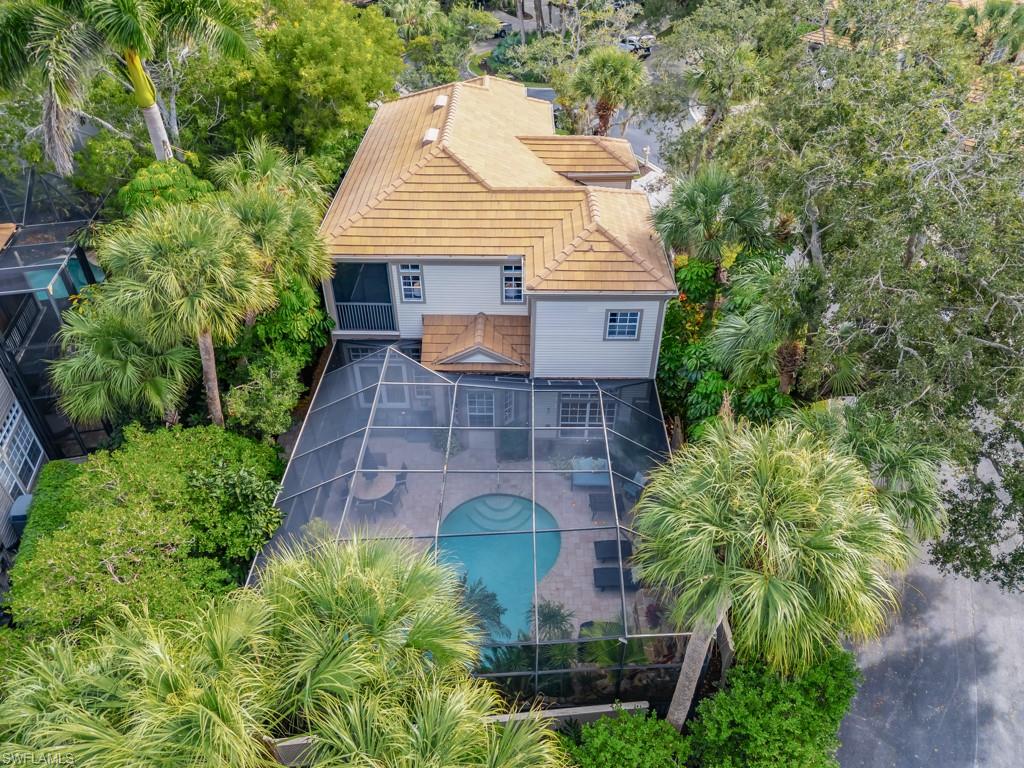 Discover a truly one-of-a-kind retreat nestled on a corner lot on a quiet cul-de-sac in Cranbrook at Bonita Bay. Wrapped in lush, mature landscaping, including 13 new Calusa bushes and 11 Areca palms, this residence feels like a private tropical sanctuary. Inside, bright natural light, soaring volume ceilings, and an open-concept layout create an inviting, airy environment. Designed for both relaxation and entertaining, the expansive screened lanai is a standout feature, offering a heated private pool and a custom rock waterfall and lighting. The 2-car air-conditioned garage adds everyday comfort and convenience. This two-story floor plan offers exceptional privacy with two primary suites, one on each level, each featuring dual vanities and walk-in showers. The upstairs suite takes indoor-outdoor living to the next level with a private glass-enclosed balcony where sliders open to screening for breezy evenings above the treetops. Wood flooring throughout the main living areas and freshly painted interiors enhance the home’s warm, welcoming feel. Additional upgrades include a new refrigerator, oven, and microwave, plus a new roof and A/C (2020) for added peace of mind. Offered furnished, this move-in ready home places you just seconds from Bonita Bay’s Riverwalk Park, complete with tennis, pickleball, bocce, basketball, and a launch point for kayaks and canoes, making it easy to embrace the active Southwest Florida lifestyle. As a resident of Bonita Bay, you’ll enjoy private access to a pristine beach park, the waterfront Backwater Jack’s Restaurant, and multiple community parks. Golf enthusiasts will appreciate the opportunity to join the Bonita Bay Club, featuring five championship golf courses, a sports and racquet center, resort-style pool, state-of-the-art fitness center, and a luxury spa and salon. A captivating blend of comfort, character, and privacy, this Cranbrook gem is truly something special.