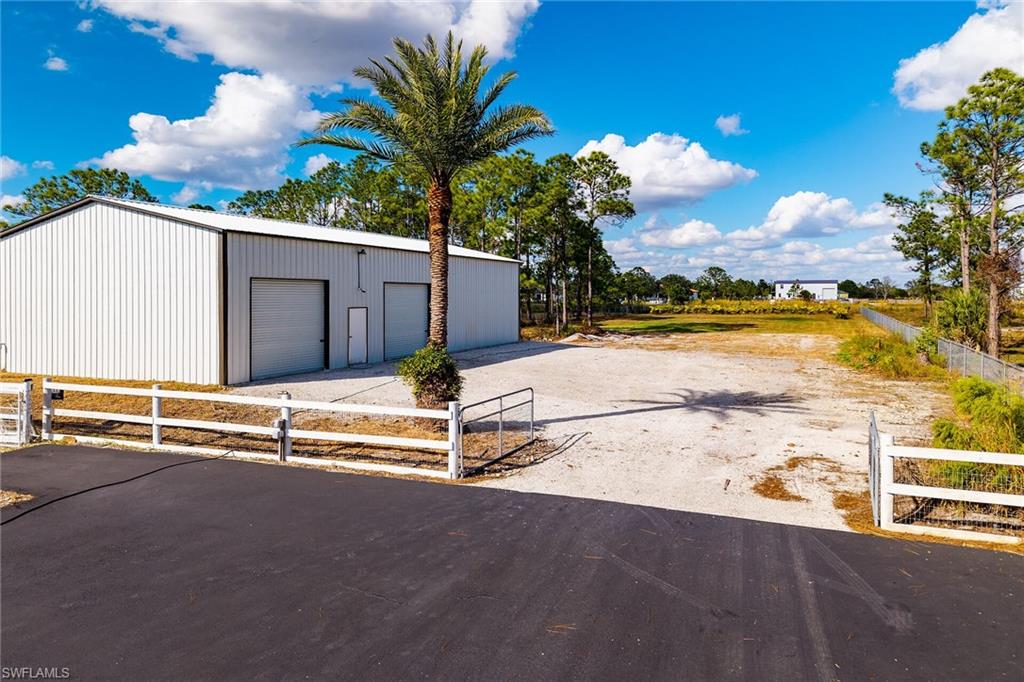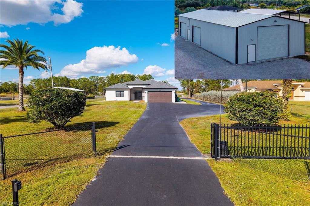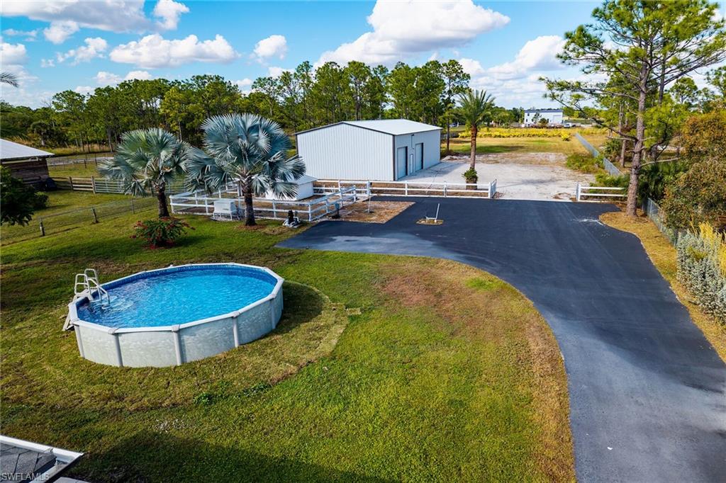 Luxury HOMESTEAD PROPERTY! Exceptional 3 Bedroom + Den, 2 Bath luxury home with Attached A/C-cooled 2-car garage on 1.59 fully fenced acres with electric gate. Built in 2020, this home features tile throughout, quartz countertops, upgraded light fixtures, solid wood cabinets, a great room layout, with split bedrooms, and a screened lanai overlooking an 18’ above-ground pool. There is a whole house reverse osmosis water system with its own well. The massive 30’x60’ steel building (2023) sits on a 6" concrete slab, fully foam-insulated with 18’ interior height, 3 overhead doors (14’x14’, two 10’x10’), two swing doors, and its own 200 Amp. 220 electrical panel with 30 & 50 amp service—ideal for RV storage, car collectors, or a workshop. Property includes solar panels AND a whole-property Generac generator for efficiency and peace of mind. High-and-dry lot with plenty of space to play or expand. A rare find offering space, versatility, and quality construction!