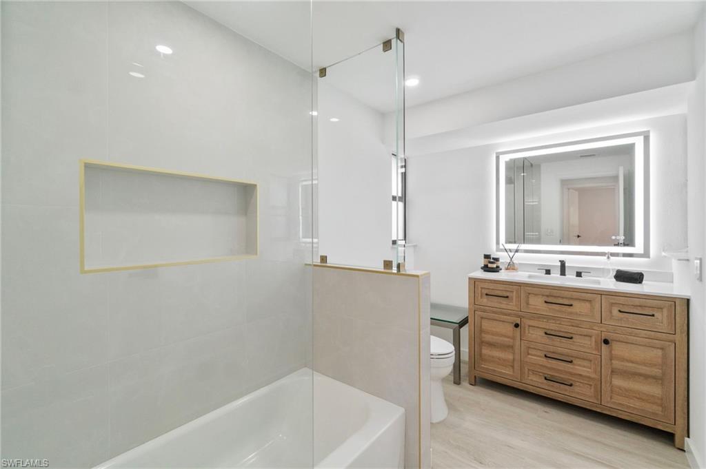 Exquisite luxury living awaits you. Nestled in Kings Lake, this stunning home offers an unparalleled blend of elegance, comfort, and modern sophistication. This home is fully remodeled (all permitted and closed through Collier County) with the utmost attention to detail and is truly ready to be enjoyed. The chef-inspired gourmet kitchen features slow-close, white shaker-style cabinetry and quartz countertops with matching quartz backsplash and brand-new stainless-steel appliances. The bathrooms have floor to ceiling tile, custom niches, new vanities, toilets, and glass enclosures. There is ample space for a future pool. The community has walking and biking paths, a community lake with one-mile sidewalk surrounding and tennis/pickleball. Located less than four miles from 5th Ave and the Naples Beaches! Low fees (HOA is $434/year) and the home is located near everyday conveniences such as Publix, CVS, Walgreens, dining, shopping, beaches, etc.