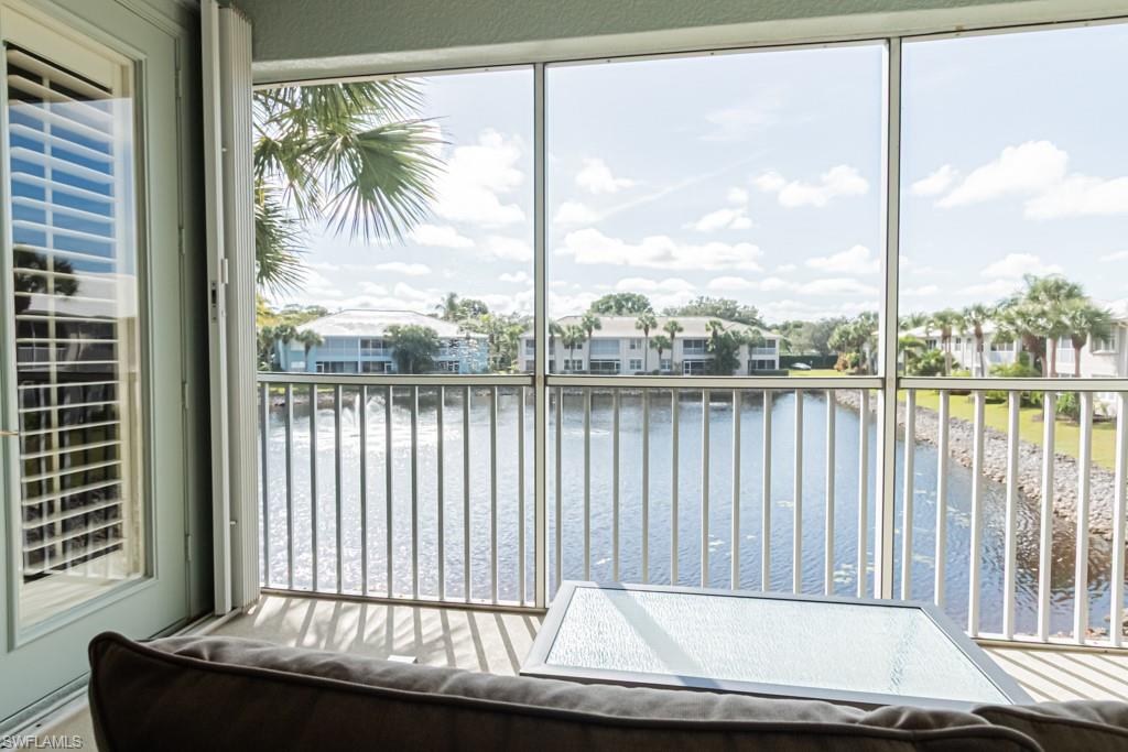 Looking for that perfect North Naples location? Check out this immaculate, bright and well maintained second floor coach home with a beautiful south facing lake view - allowing one to see beautiful skies from morning to sunset. Located in amenity rich Sterling Oaks, this 2 bedroom and a den home offers scenic water views from both the living room/lanai and primary bedroom. The primary bath contains dual sinks and a large walk-in shower. The exterior and lanai were just freshly painted in 2025. This well maintained home with its own attached garage presents as a wonderful primary residence or a calm seasonal escape. This prime location is less than an 8 minute drive to Barefoot/Bonita Beach, Mercato dining/shopping and less than 30 minutes to the RSW Airport. Experience county club living with a Jr Olympic saltwater pool, hot tub and outside cabana. There is a subperb fitness center, mulit-purpose room and sauna for your recreation as well. The clubhouse offers an engaing place to enjoy social activities and/or a Friday evening dinner. Do you enjoy tennis, pickleball or bocce? Sterling Oaks has you covered with optional tennis on 12 Tru Harcourt lighted courts with an onsite USTA pro- offering clinics and lessons and 5 pickleball courts. Immerse yourself in nature as this community is set amid 100 acres of breathtaking nature preserves of Audubon. Enjoy walking among the well landscaped areas in this active, pet friendly community.