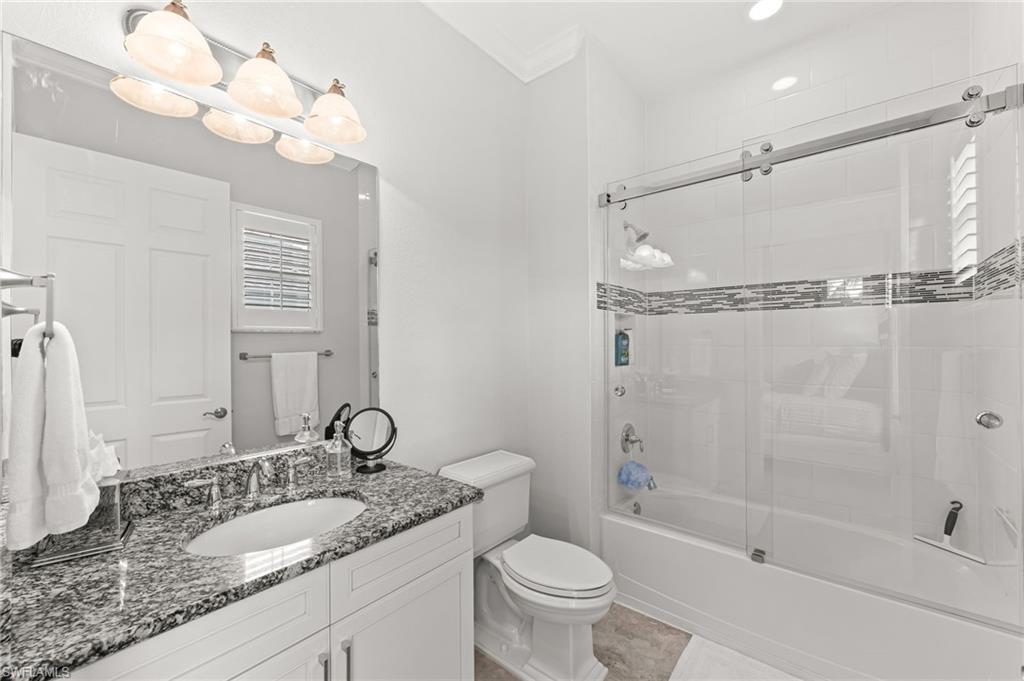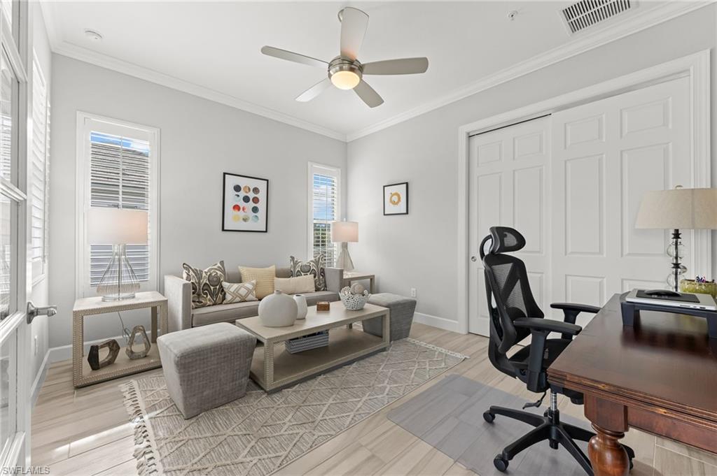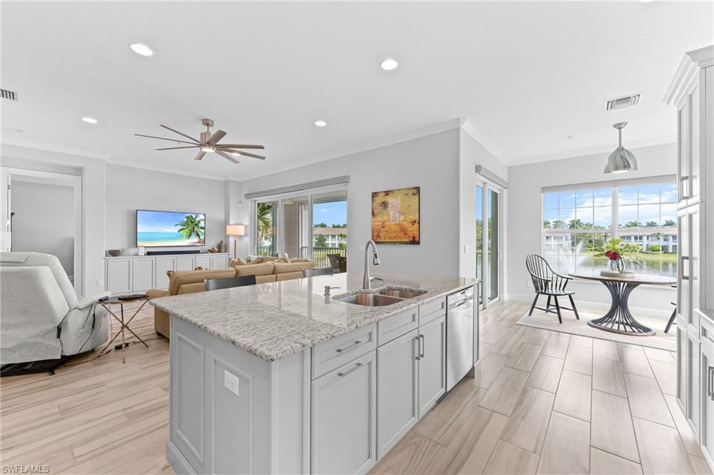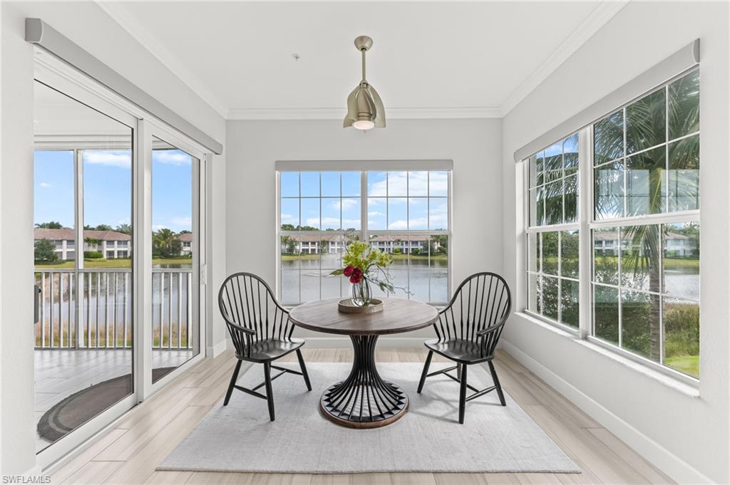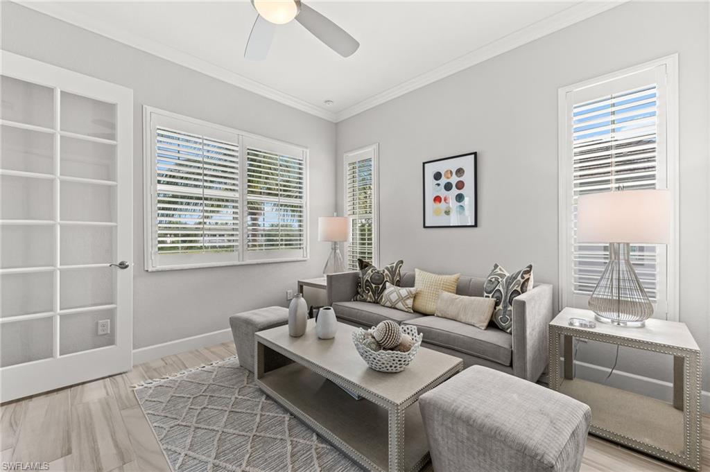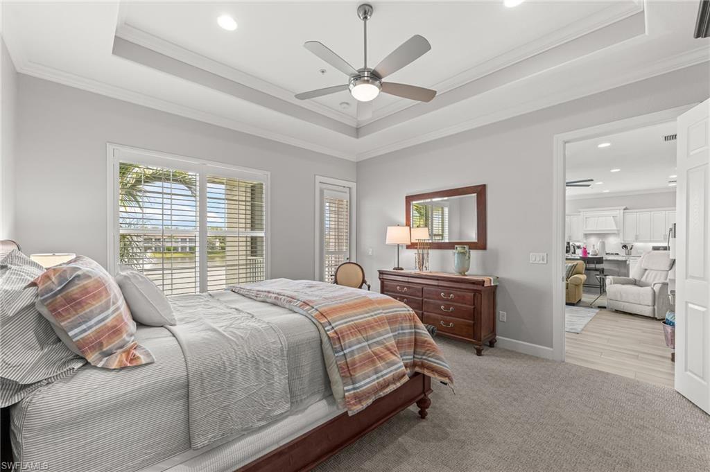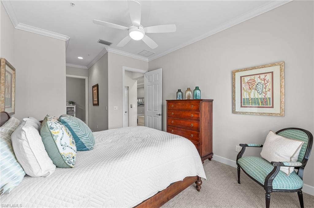Rarely Available Luxury! Experience the pinnacle of resort living in this meticulously maintained, second-floor St. Andrews model at Lely Resort's exclusive Signature Club. Built by Stock Development in 2015, this highly desirable 2,738 sq. ft. condominium is an entertainer's dream, featuring four bedrooms, 3.5 baths, and a private elevator. Step inside a light-filled, private haven surrounded by lush magnolias and palms. The grand foyer sets a luxurious tone with a 19-foot ceiling, custom chandelier, and tray ceiling. Throughout, you'll find elegant finishes like crown molding, recessed lighting, white plantation shutters, and beautiful tile flooring. The chef's kitchen is spectacular, boasting white cabinetry, quartz countertops, stainless steel appliances, a wall oven, and natural gas cooking. A large island and formal dining area flow seamlessly into the spacious living room, where glass sliders open to the serene lanai with stunning water views. The outdoor living space is protected by impact-resistant enclosures and remote-controlled Storm-Smart shutters. Retreat to the private owner's suite, complete with lanai access, a tray ceiling, and two custom walk-in closets. The en-suite bath is a spa-like escape with a dual vanity, frameless glass walk-in shower, and separate soaking tub. Guest accommodations are equally lavish, including one bedroom with a private balcony and en-suite bath, and another with an en-suite bath, plus a versatile fourth bedroom/den/study. Additional features include a well-appointed laundry room with a utility sink and desk, impact-resistant windows/doors/sliders, and an epoxy-floored two-car garage. As a resident, you unlock the doors to the famed, "Eight-time Club of the Year" Players Club & Spa. Imagine your weekends spent by the cascading 22-foot waterfall pool, enjoying drinks at the tiki hut, or challenging friends on the premier tennis and pickleball courts. With gourmet restaurants, a state- of-the-art fitness center, a full spa, and three championship golf courses all at your fingertips, you're not just buying a condo—you're securing a life of unparalleled resort amenity and Naple's bliss. LIVE THE LELY LIFE TODAY!!