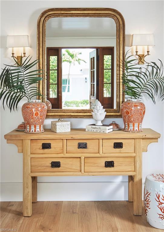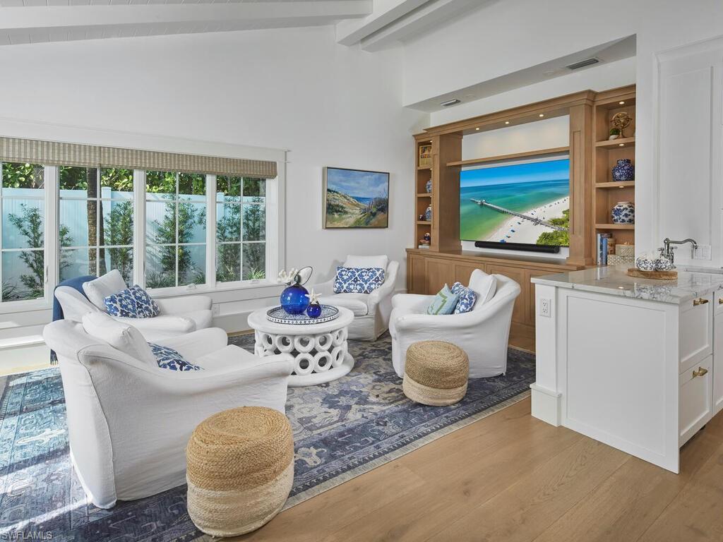 Live the charm of Old Florida with modern luxury in this reimagined home. Moments to Naples Beach, the Naples Pier, the shops and restaurants on 5th Avenue South and 3rd Street South. Completely re-constructed in 2015, and remodeled in 2021. The home features an open-concept floor plan with vaulted ceilings and multiple indoor living areas designed for everyday use and entertaining. The kitchen includes a raised ceiling, a La Cornue dual-fuel range, a large quartzite covered island, wet bar and custom cabinetry and built-ins. A separate study provides a private space for work, reading and privacy. The owner’s suite includes dual walk-in closets, a custom vanity, dual sinks, and a large shower. Three additional bedrooms each include an en-suite bathroom and walk-in closet. A spacious second-floor guest area offers flexible use for visitors, additional living space, or other household needs. The kitchen, dining, and sitting areas overlook the southern-exposed yard, which includes a pool and spa with shell-stone decking. This is Old Naples living at its finest—easy, breezy, beautifully refined, and perfectly situated for enjoying everything Naples has to offer.