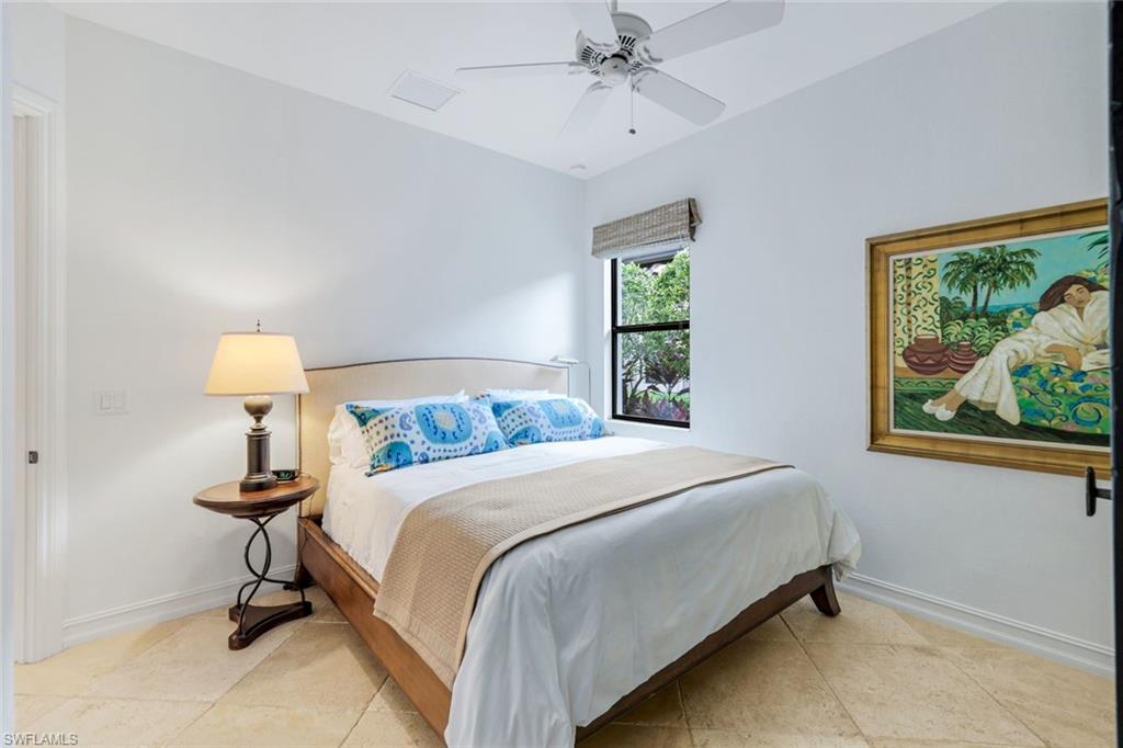 6477 Costa Circle embodies a level of refinement rarely found in Lely Resort. Set within the exclusive enclave of Lakoya, this custom Greenbriar II by Stock Signature Homes pairs architectural integrity with a curated aesthetic that elevates every room. A hand-forged Cantera iron door opens to interiors defined by thoughtful craftsmanship—24-inch diagonal stone flooring, tailored millwork, and a luminous flow of natural light. The kitchen serves as both a functional workspace and a work of art, showcasing stacked illuminated cabinetry, a walnut butcher-block island, hand-painted Tabarka tile, a Viking gas cooktop, Monogram appliances, and a California Closets pantry designed for effortless organization. Sophisticated detailing continues throughout: an antique-mirror feature wall in the dining room, living-room beams with integrated LED lighting, and a bespoke pool bath finished with artisanal tilework. The primary suite stands apart as a serene retreat, enriched with Venetian plaster walls in the bath and dual closets by California Closets. Beyond the glass, more than 2,400 square feet of lanai space creates an exceptionally private sanctuary. A rectilinear saltwater pool and spa anchor the outdoor living experience, surrounded by mature tropical landscaping and the luxury of true western exposure for nightly sunsets. The 710-square-foot covered area is finished with a cypress ceiling, custom cabinetry, wet bar, sink, refrigerator, and a built-in TV—an outdoor living room designed for year-round enjoyment. Additional features include solid-core doors, impact-resistant windows and doors, hot-water recirculation, custom lighting, upgraded window treatments, and a finished garage with workbench. The result is a residence that feels bespoke at every turn. Within minutes of downtown Naples and the Gulf, and complemented by world-class golf, tennis, spa, and dining amenities, this home speaks to the buyer who values craftsmanship, privacy, and a sophisticated resort lifestyle.