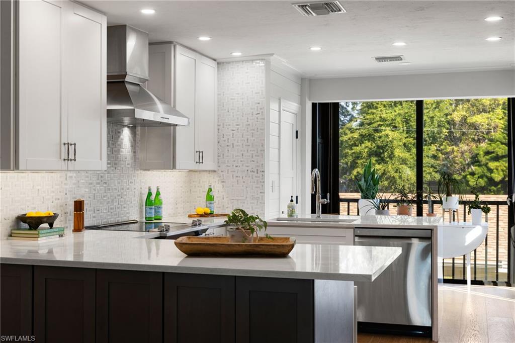 Enjoy timeless Moorings living in a fully reimagined residence that pairs modern comfort with the character of one of Naples’ most established neighborhoods. This 2-bedroom plus den (easily a 3rd bedroom) waterfront condo has been redesigned from top to bottom for the buyer who demands quality and a truly move-in-ready home. The owners invested over $200,000 to reimagine the entire space from top to bottom. The floor plan was thoughtfully reconfigured to create a larger, more functional kitchen and completely updated bathrooms. Interior enhancements include engineered wood flooring throughout, custom crown molding, marble flooring in the primary bath, French-door detailing, tongue-and-groove accents, 6-inch baseboards, and modern shaker doors with new wood framing. All lighting has been upgraded with recessed fixtures and a full Lutron system, and the home is secured with impact-resistant windows. The kitchen stands out with all-new custom cabinetry, a 4-door Thermador refrigerator, wine cooler, marble backsplash, elegant quartz countertops, and a generous breakfast nook. A full-size washer and dryer add everyday convenience. With approximately 1,783 sq. ft., the residence lives open, airy, and well planned. The building itself has benefited from meaningful improvements, including a newer roof, fresh exterior paint, updated lighting, and more. One covered carport space and generous guest parking complete the package. Perfectly located in the heart of Naples, you’re minutes from premier shopping, dining, and the PRIVATE MOORINGS BEACH CLUB —offering beach access, restrooms, and convenient parking. Somerset at Moorings places you close to 5th Avenue and Naples’ iconic white-sand beaches, delivering the lifestyle the Moorings is known for. A rare opportunity: beautifully updated, ideally located, and built for the buyer who refuses to settle.