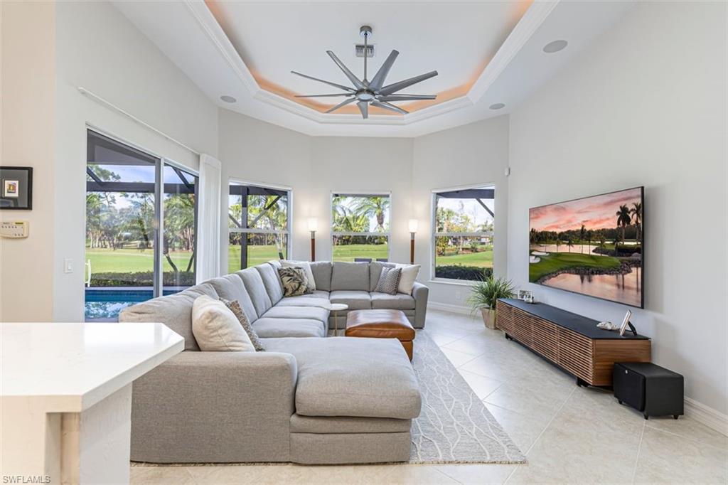 Experience refined luxury living in this stunning 3-bedroom, 3-bath residence in Tiger Island Estates, complete with a versatile den and ideally positioned along the 17th tee box of the prestigious Flamingo Golf Course at Lely Resort. Designed with both elegance and comfort in mind, this exquisite home offers spacious interiors, sophisticated finishes, and an effortless indoor–outdoor flow perfect for today’s lifestyle. The open-concept main living area is defined by soaring 12-foot ceilings, tray detailing, arched entryways, abundant natural light, and seamless access to the home’s private outdoor retreat complete with a stunning saltwater pool and spa, space for entertaining and serene golf course views delivering an exceptional level of relaxation and privacy. Contemporary furnishings enhance the sense of refinement throughout. The well-appointed kitchen features quartz countertops, stainless steel appliances, and generous counter space. Both formal and casual dining areas make it ideal for everyday living as well as effortless entertaining. The primary suite is thoughtfully designed with ample space, a luxurious en-suite bath, and direct access to the lanai. Two additional guest suites provide comfort for visitors. With refined details throughout, elegant finishes, and an unrivaled setting along the Flamingo Golf Course at Lely Resort, this home presents a rare opportunity to experience elevated Naples living. Lely Resort offers two public golf courses and the private membership option at The Classics Country Club. Players Club membership is also optional. Naples offers world-class beaches, upscale dining, boutique shopping, vibrant arts scene, the popular 5th Avenue South and Third Street South destinations of Olde Naples and endless outdoor recreation.